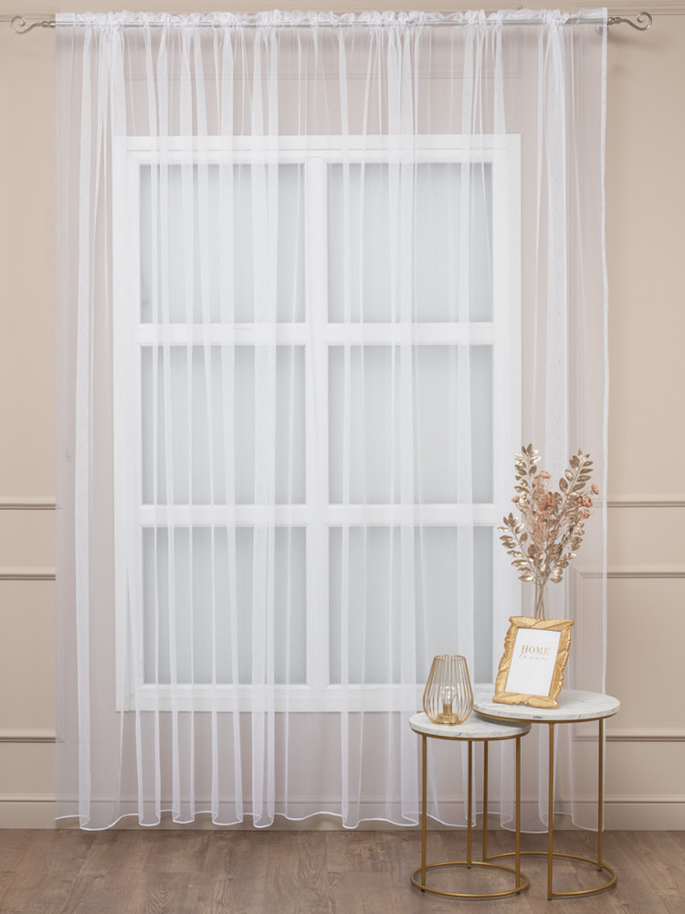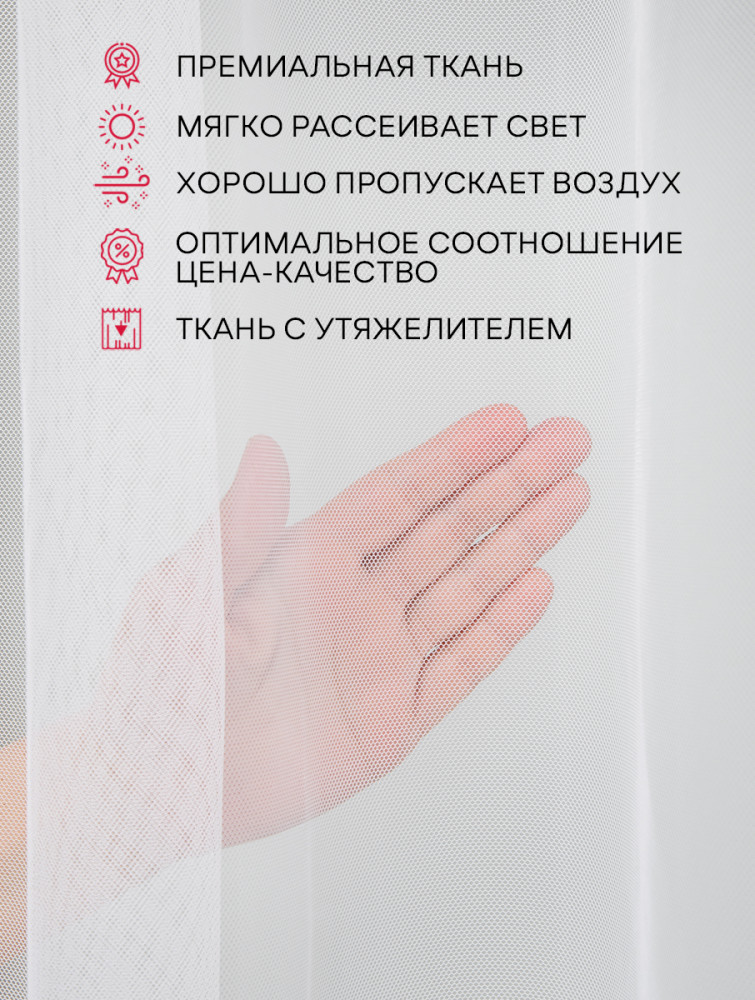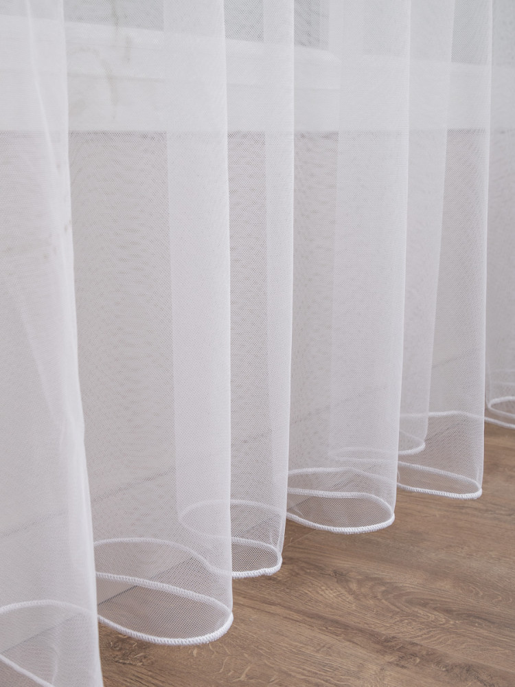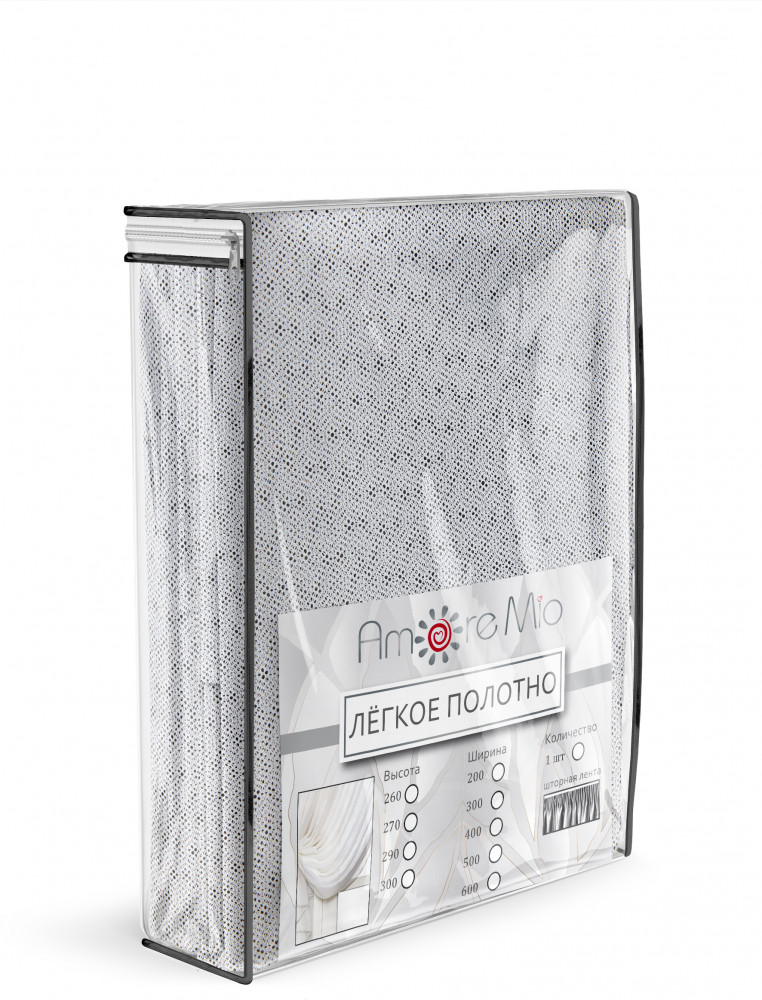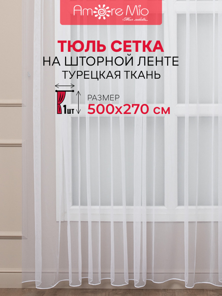 Мягкий, нежный тюль белого цвета торговой марки «Amore Mio» прекрасно дополнит интерьер как гостиной, так и спальни, кухни или детской комнаты. Тюль производится в России из качественной турецкой ткани. Основа изделия — мелкая сетка, напоминающая соты, благодаря чему полотно выглядит легким и воздушным.