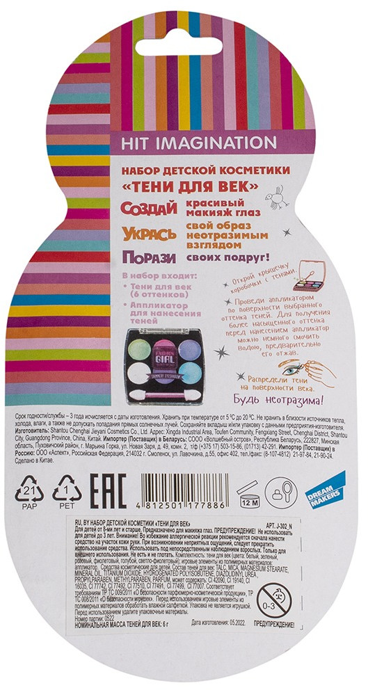 Dream makers Набор косметики детской «Тени для век»В данный момент этот товар отсутствует в продаже. Возможно, у нас найдется аналогичный или похожий товар здесь. Серия: Hit Imagination Великолепный набор, чтобы стать самой красивой! Тут найдется роскошное зеркало, а также тени для век и блеск для губ, а также удобные кисточки и аппликаторы для нанесения праздничного марафета. Составляющие набора изготовлены из качественных материалов, которые не нанесут вреда детскому здоровью. Для девочек от 8 лет. |