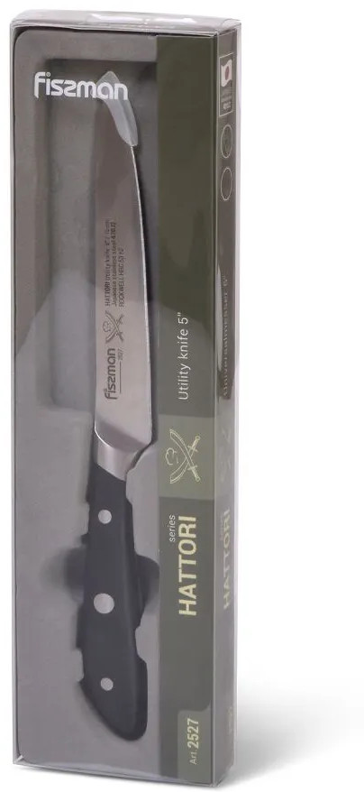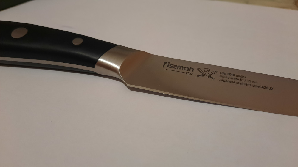 В серию Hattori вошли кухонные ножи из японской стали 420J2. Она была разработана для изделий, эксплуатируемых в условиях повышенной влажности. Эта сталь прочная и износостойкая, закаленная до 53 +/-2 единиц по шкале Роквелла.