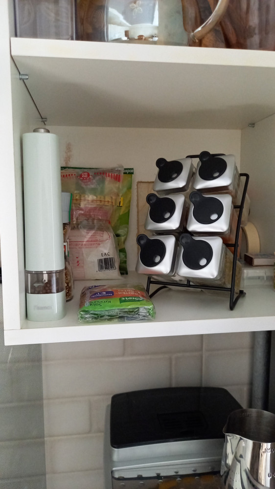 Очень удобные контейнеры для специй. Есть несколько вариантов отверстий что очень удобно. Экономят пространство, эстетика, все как я люблю.