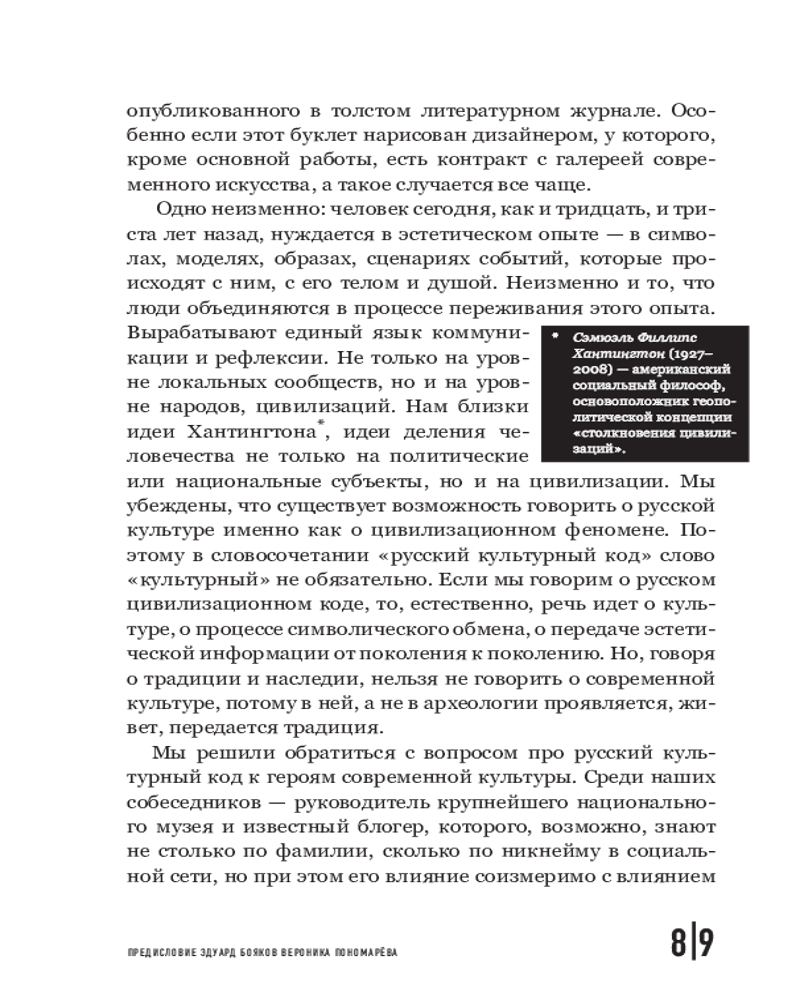 — возможность посмотреть на современную русскую культуру глазами самых разных ее деятелей, каждый из которых успешен своей области;