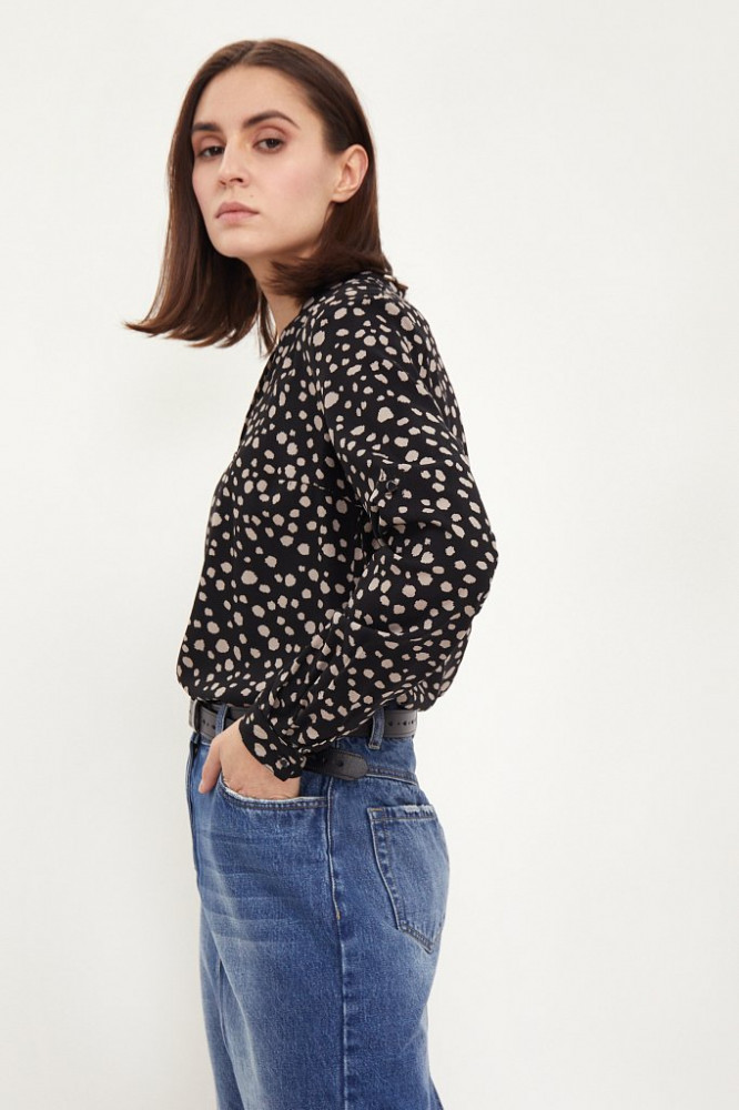 Блузка отличная! Размер подошел, сидит отлично. Приятная ткань, аккуратный пошив. По длине доходит до бедра. С черными брюками смотрится очень элегантно, также хорошо с джинсами.