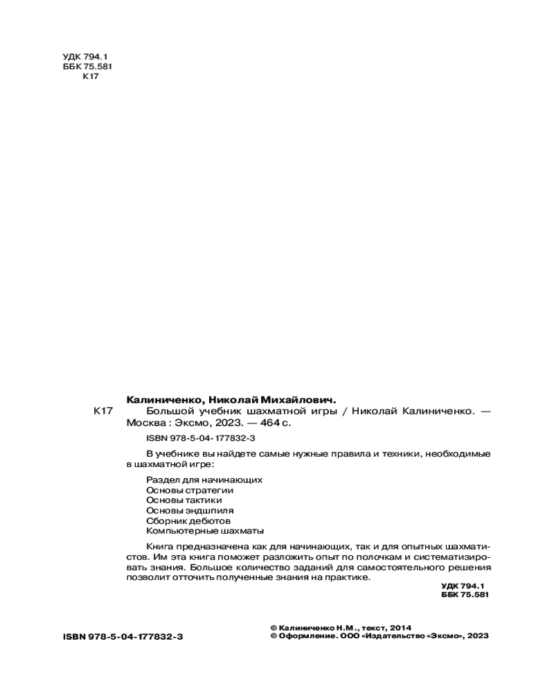 Большой учебник шахматной игрыНиколай Михайлович Калиниченко -20% +60