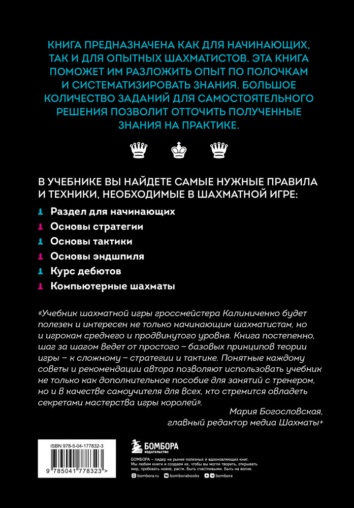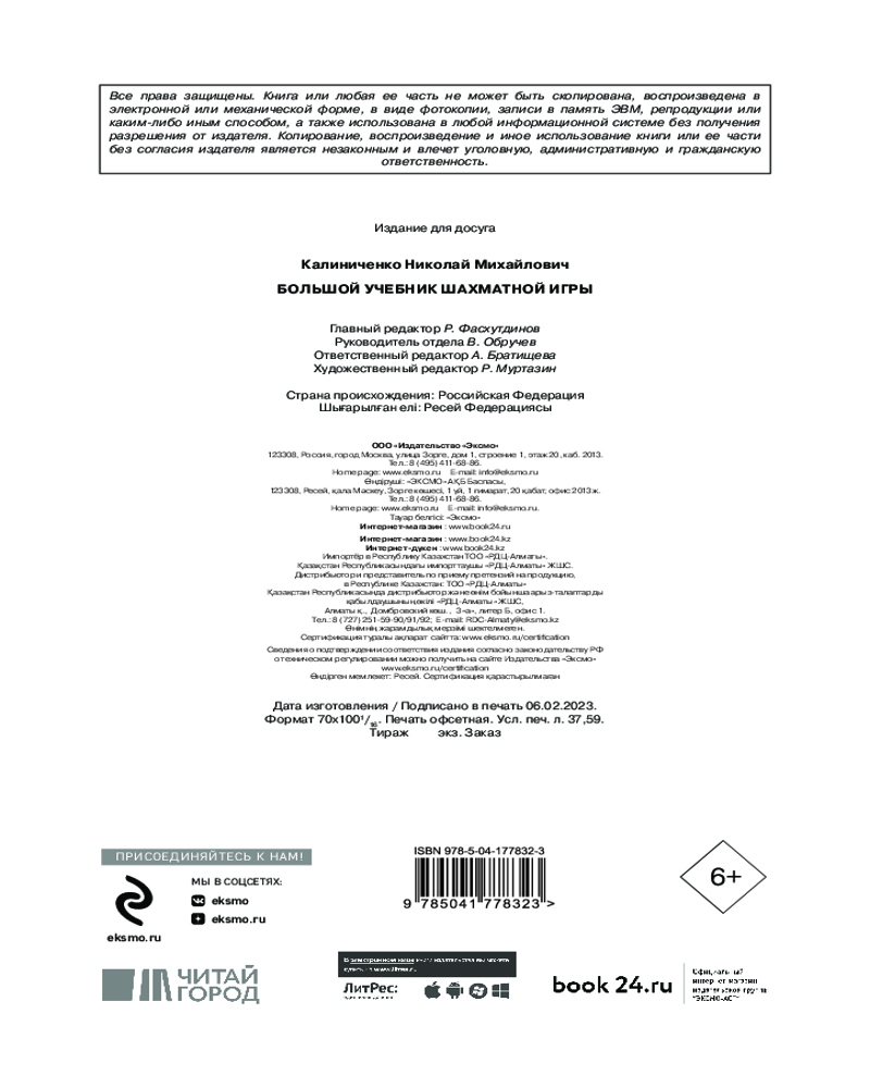 💳 Оплатить за товар можно при получении 🇰🇿 Есть бесплатная доставка по Казахстану от 1 дня 🎁 Копите бонусы с каждой покупки Серия: Шахматный клуб В учебнике вы найдете самые нужные правила и техники, необходимые в шахматной игре: |