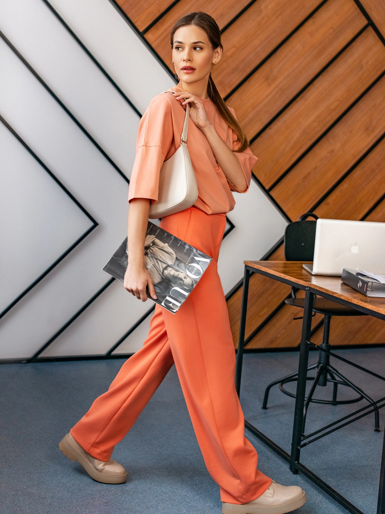 Цвет брюк предполагает, что это летняя одежда, но для лета ткань слишком плотная и тяжелая