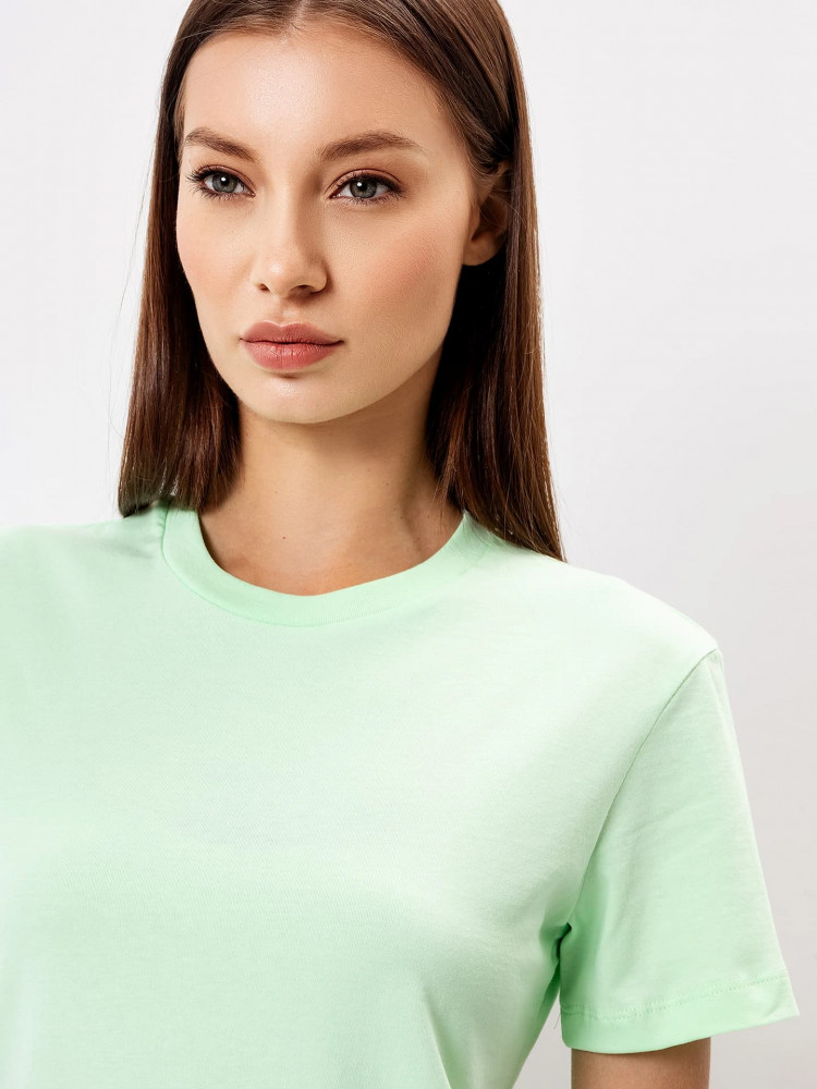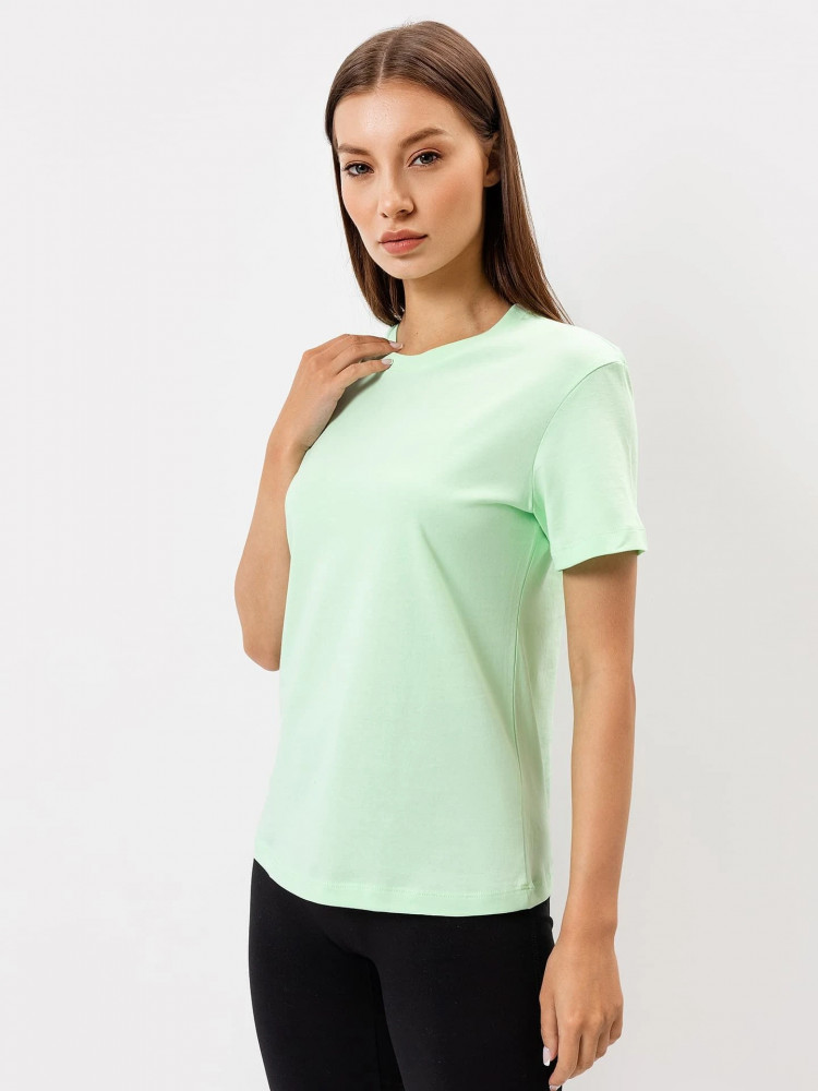Хлопковая однотонная футболка из кулирного полотна. Силуэт свободный. Горловина круглой формы. Рукава короткие. Отличный вариант не только для спортивных занятий, но и для домашнего ношения, сна и даже прогулок.