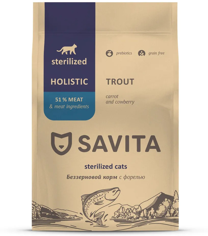 Savita Корм для взрослых стерилизованных кошек с форелью