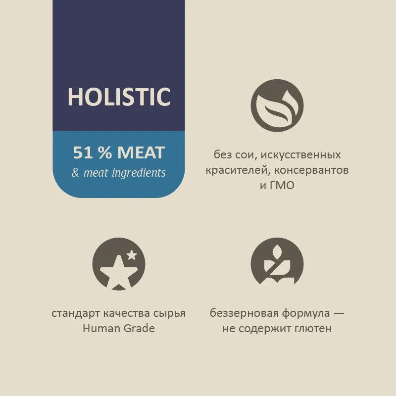 Удобная упаковка. Корм выглядит и пахнет хорошо. Состав холистик.