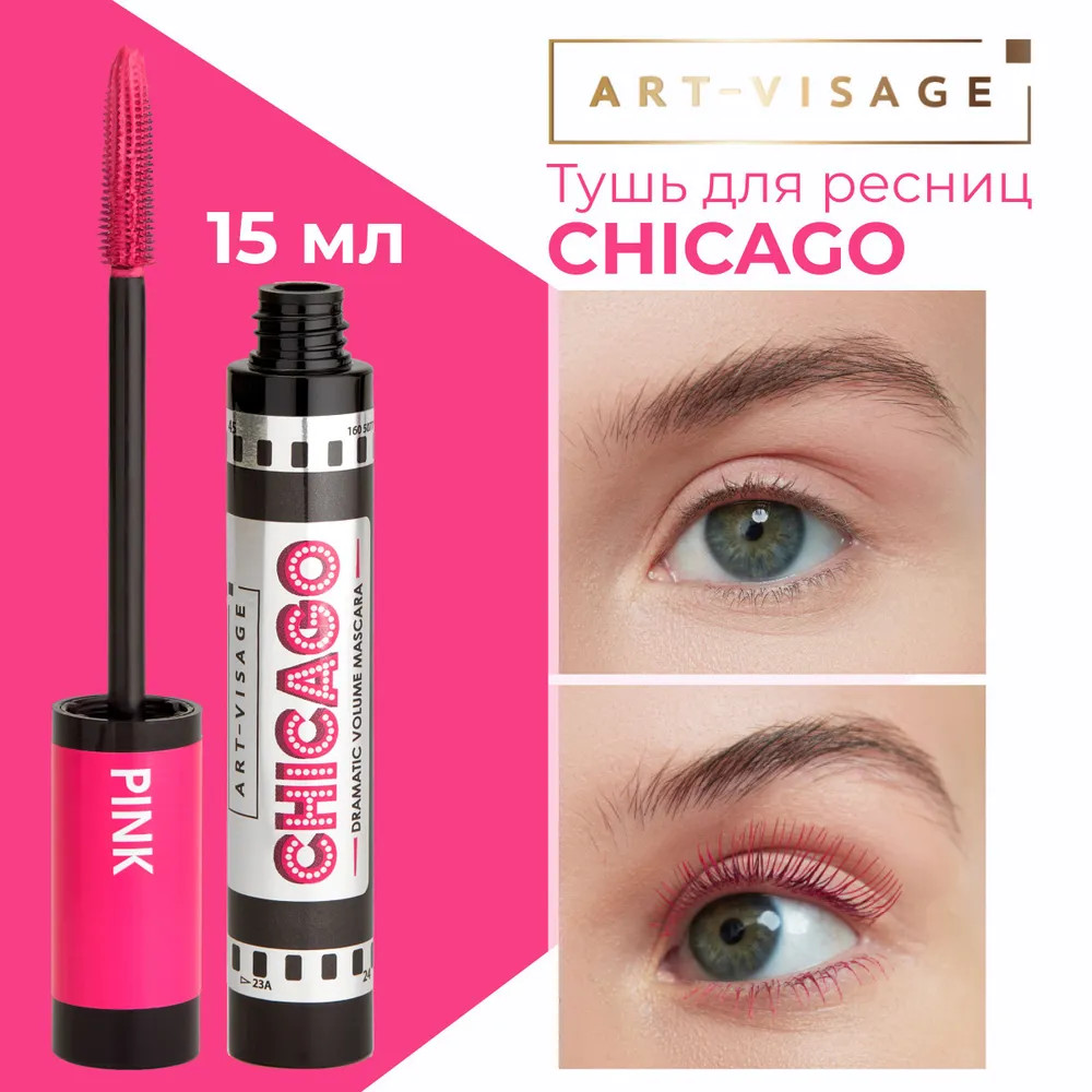 Art-Visage Тушь для ресниц «Chicago» суперобъемная, оттенок Розовый