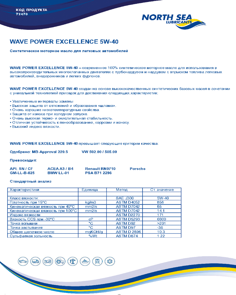North Sea Lubricants Моторное масло North Sea Wave Power Excellence 5W-40+58