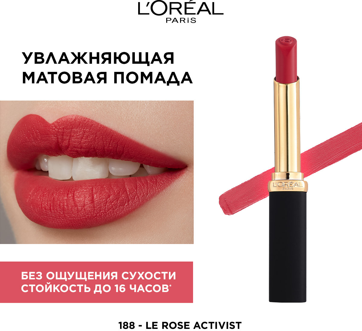L'Oreal Paris Помада для губ увлажняющая матовая «Intense Volume Matte», тон 188 Le Rose Activist