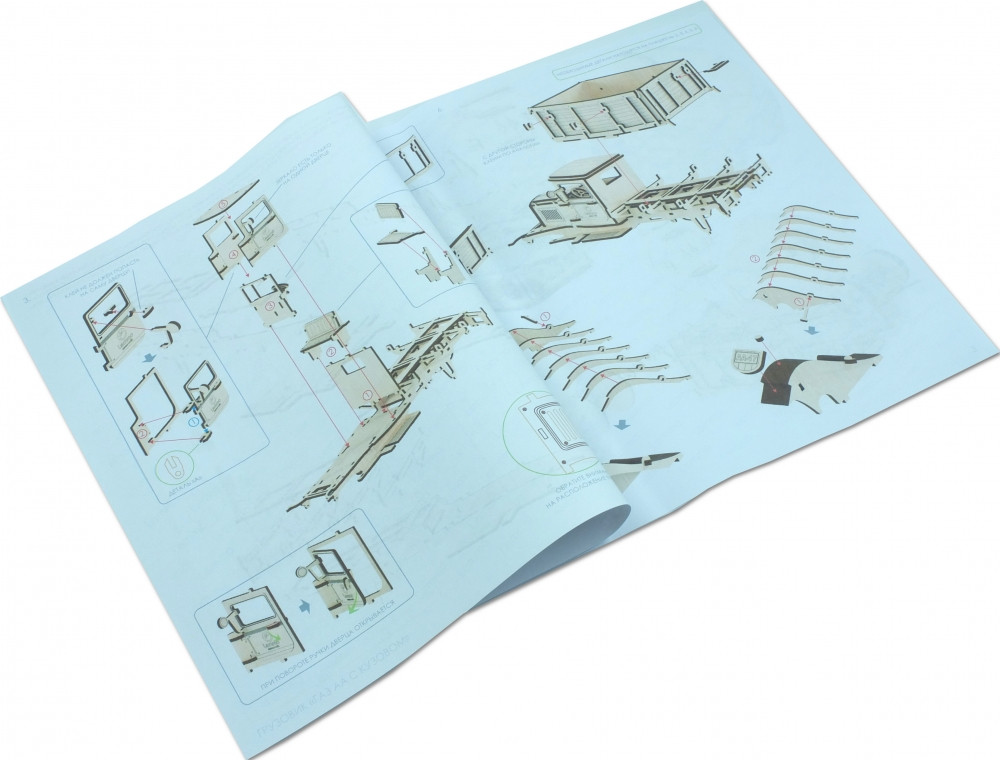 Все детали выполнены из качественной древесины и имеют сильный насыщенный запах дерева. Наборы укомплектованы клеем ПВА и наждачной бумагой. Любой конструктор после сборки можно раскрасить акриловыми и гуашевыми красками, но даже без этого в результате получается полноценная игрушка.