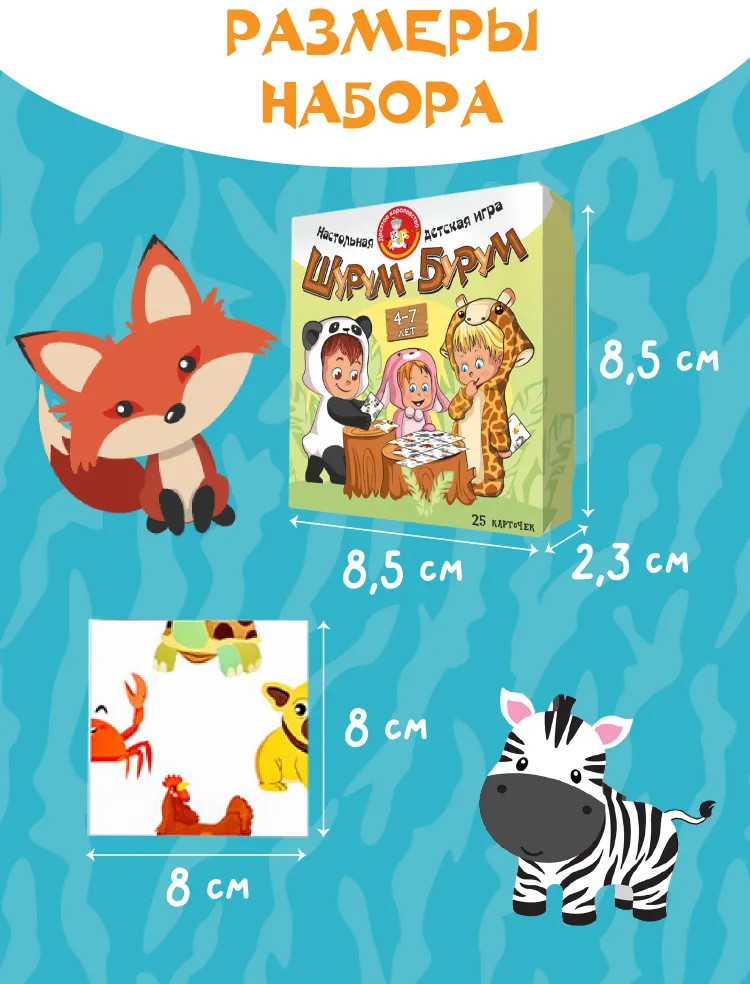 💳 Оплатить за товар можно при получении 🇰🇿 Есть бесплатная доставка по Казахстану 🎁 Копите бонусы с каждой покупки Серия: Шурум-бурум Настольная игра «Шурум-Бурум» животные поможет детям увлекательно провести время, собирая из карточек изображения животных. В процессе игры ребенок тренирует наблюдательность, логическое мышление, развивает кругозор. Настольные игры могут стать прекрасным поводом для проведения времени вместе всей семьей. Рекомендуется для детей старше 4 лет. |