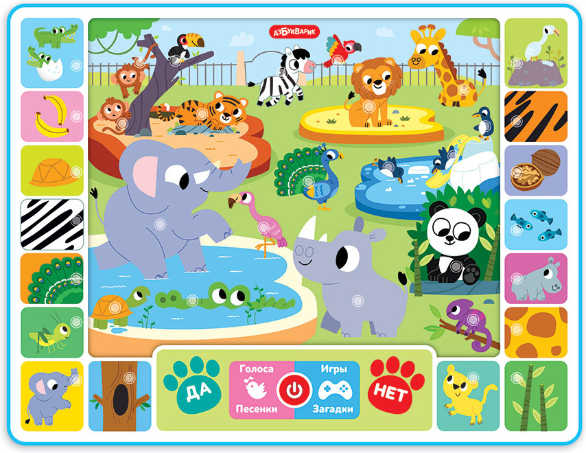 💳 Оплатить за товар можно при получении 🇰🇿 Есть бесплатная доставка по Казахстану от 1 дня 🎁 Копите бонусы с каждой покупки Серия: Планшетик «Играем в зоопарке» — это не просто обучающий говорящий планшетик, это настоящий интерактивный зоопарк для детей! В нем ребенок найдет 6 игровых режимов, более 100 вопросов и заданий и 30 веселых песенок. |