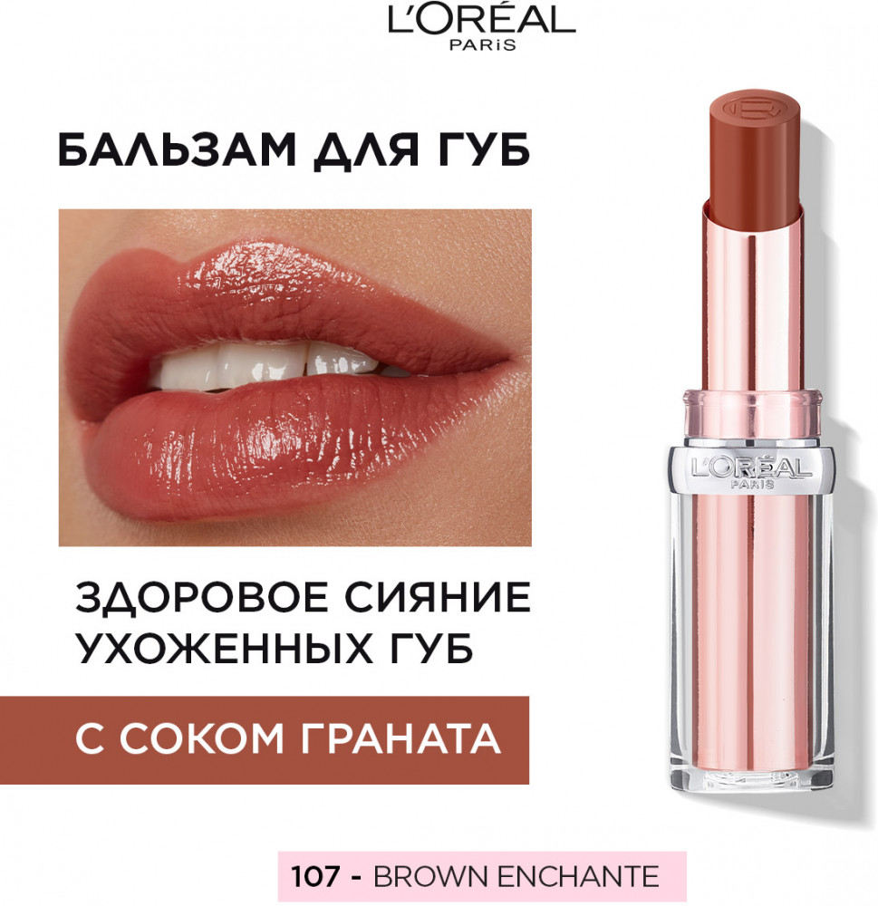 L'Oreal Paris Помада-бальзам для губ «Glow Paradise», тон 107 Brown Enchante