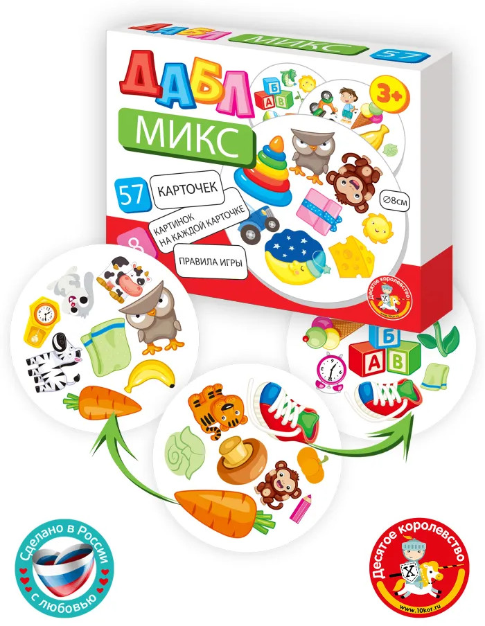 💳 Оплатить за товар можно при получении 🇰🇿 Есть бесплатная доставка по Казахстану от 1 дня 🎁 Копите бонусы с каждой покупки Серия: Дабл Увлекательная игра для детей старше 3 лет Дабл «Микс» — это набор карточек с яркими рисунками. Игра будет интересна и девочкам и мальчикам. В процессе игры ребенок тренирует наблюдательность, логическое мышление, развивает кругозор. Настольные игры могут стать прекрасным поводом для проведения времени вместе всей семьей. |