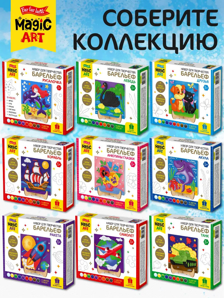 В данный момент этот товар отсутствует в продаже. Возможно, у нас найдется аналогичный или похожий товар здесь. Барельеф — это изображение из гипса с объемными элементами. Созданный своими руками барельеф, станет отличным подарком для друзей и близких и придаст особый колорит детской комнате. В процессе создания гипсовых барельефов ребёнок развивает свой художественный талант, эстетический вкус, мелкую моторику и усидчивость.