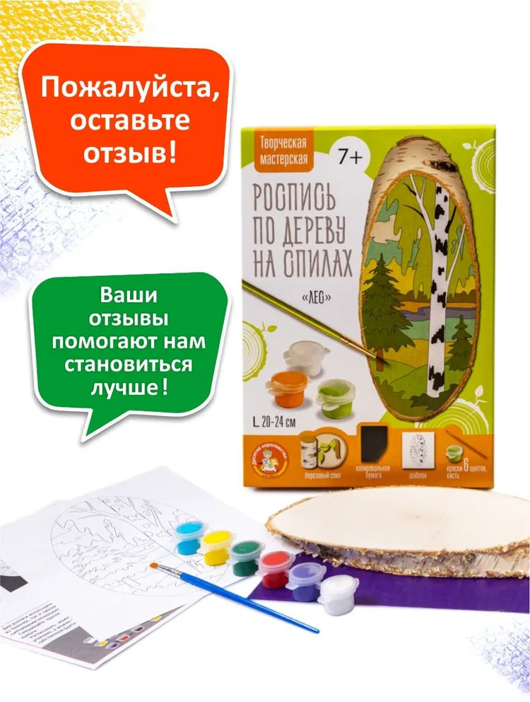 💳 Оплатить за товар можно при получении 🇰🇿 Есть бесплатная доставка по Казахстану от 1 дня 🎁 Копите бонусы с каждой покупки Роспись по дереву на спиле «Лес» (косой спил) — набор, с помощью которого можно создать уникальный сувенир для друзей и близких. Картина на спиле станет интересным элементом декора любого помещения. Такую поделку можно подарить друзьям или близким, или украсить детскую комнату. Занятия росписью развивают мелкую моторику, художественный и эстетический вкус, тренируют внимательность и усидчивость. |