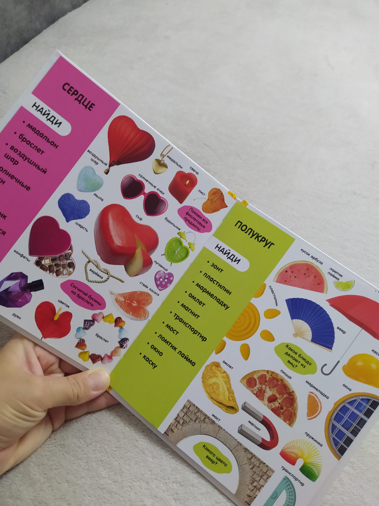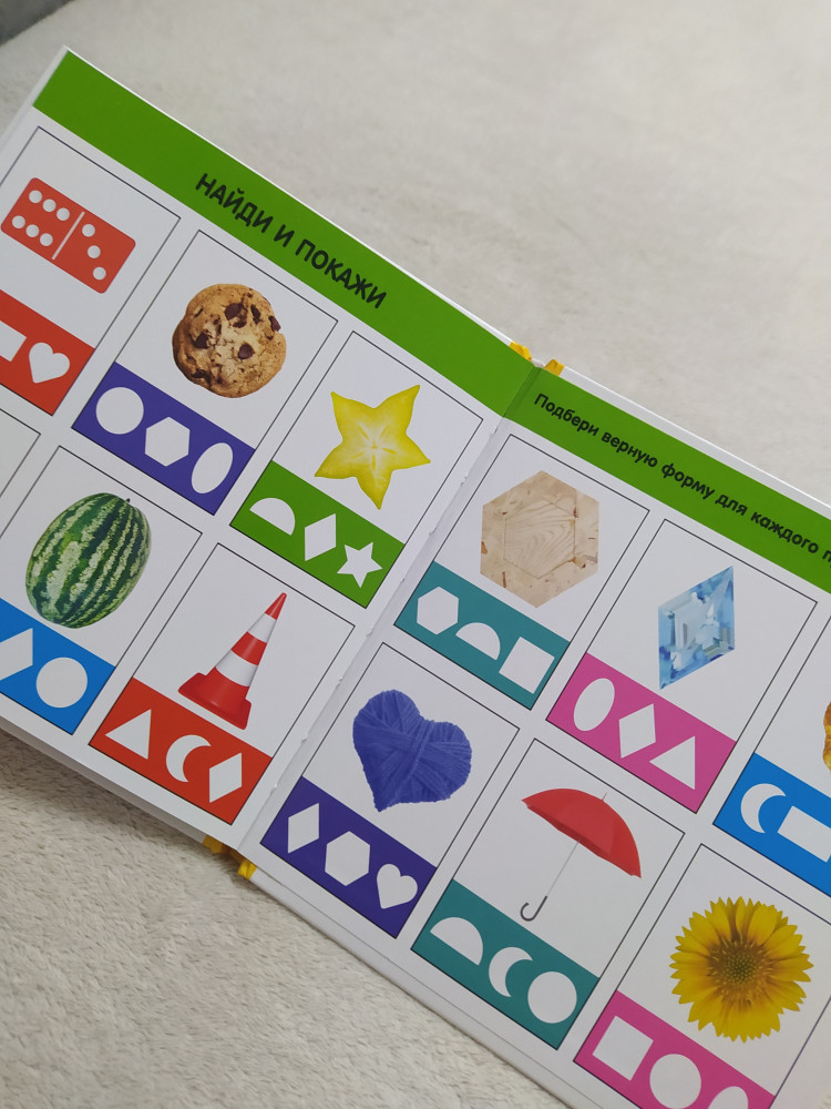 Первые знания. Фотокниги. ФормыВ данный момент этот товар отсутствует в продаже. Возможно, у нас найдется аналогичный или похожий товар здесь. Серия: Первые знания. Фотокниги Фотокнига «Формы» увлечет ребенка надолго и познакомит его с геометрическими формами на примере разных предметов. Благодаря большому формату и плотному картону она идеально подходит для занятий даже с полугодовалым малышом. Почему работать с этой книжкой так интересно? На каждом развороте малыш будет знакомиться с новой формой, играть в «найди и покажи», отыскивая и считая заданные предметы, отвечать на вопросы. Кроме того, занятия с книгой помогут увеличить словарный запас, ведь названия всех предметов подписаны, а это целых 249 новых слов! |