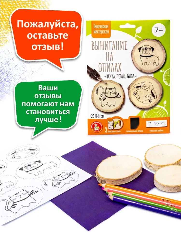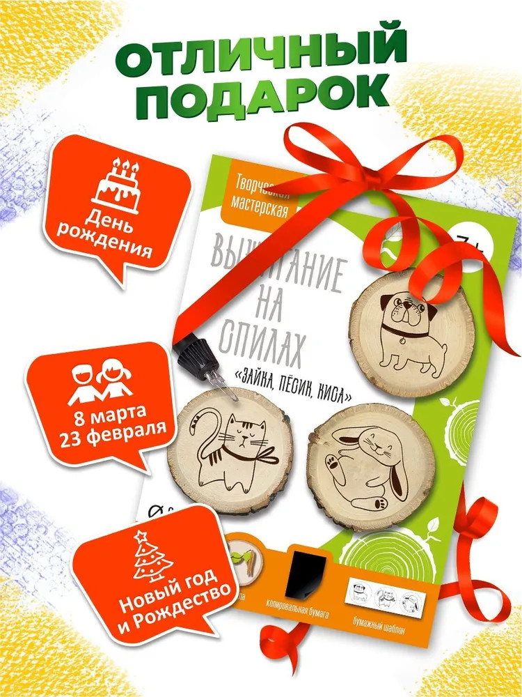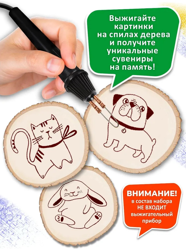 💳 Оплатить за товар можно при получении 🇰🇿 Есть бесплатная доставка по Казахстану от 1 дня 🎁 Копите бонусы с каждой покупки Набор спилов дерева для выжигания — отличный подарок для любителей данного хобби. На спилы можно нанести изображения Зайки, песика или кисы и выжечь. С помощью данного набора можно создать уникальный сувенир на память! Включайте свою креативность и начинайте творить! Занятия росписью развивают мелкую моторику, художественный и эстетический вкус, тренируют внимательность и усидчивость. Выжигание развивает мелкую моторику, творческие наклонности, а также тренирует внимательность и усидчивость. |