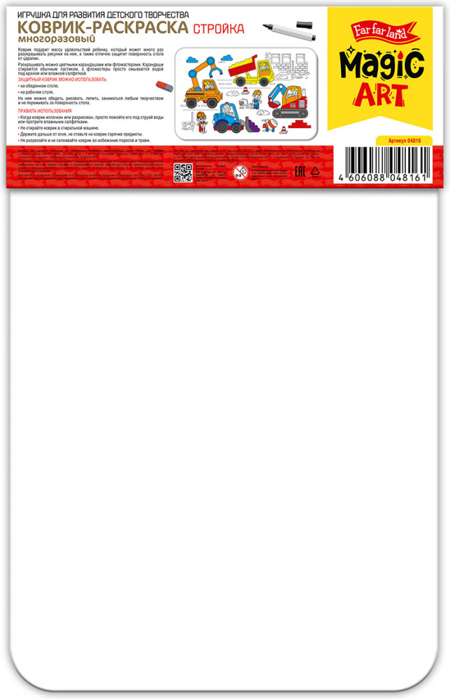 💳 Оплатить за товар можно при получении 🇰🇿 Есть бесплатная доставка по Казахстану 🎁 Копите бонусы с каждой покупки Коврик-раскраска — это многоразовая и многофункциональная раскраска для детей. Раскрасить коврик можно цветными карандашами или фломастерами. Карандаши стираются обычным ластиком, а фломастеры — просто смываются водой или влажной салфеткой. Коврик изготовлен из мягкого приятного пластика со специальным покрытием, благодаря которому на нем возможно бесконечное множество раз рисовать, стирать и снова рисовать. Пластиковая раскраска может служить защитным покрытием для обеденного или рабочего стола. На ней можно лепить, творить и не бояться за поверхность стола. |