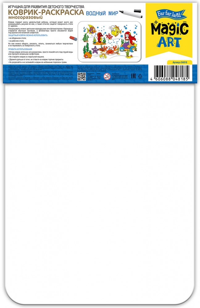 💳 Оплатить за товар можно при получении 🇰🇿 Есть бесплатная доставка по Казахстану от 1 дня 🎁 Копите бонусы с каждой покупки Коврик-раскраска — это многоразовая и многофункциональная раскраска для детей. Раскрасить коврик можно цветными карандашами или фломастерами. Карандаши стираются обычным ластиком, а фломастеры — просто смываются водой или влажной салфеткой. Коврик изготовлен из мягкого приятного пластика со специальным покрытием, благодаря которому на нем возможно бесконечное множество раз рисовать, стирать и снова рисовать. Пластиковая раскраска может служить защитным покрытием для обеденного или рабочего стола. На ней можно лепить, творить и не бояться за поверхность стола. |