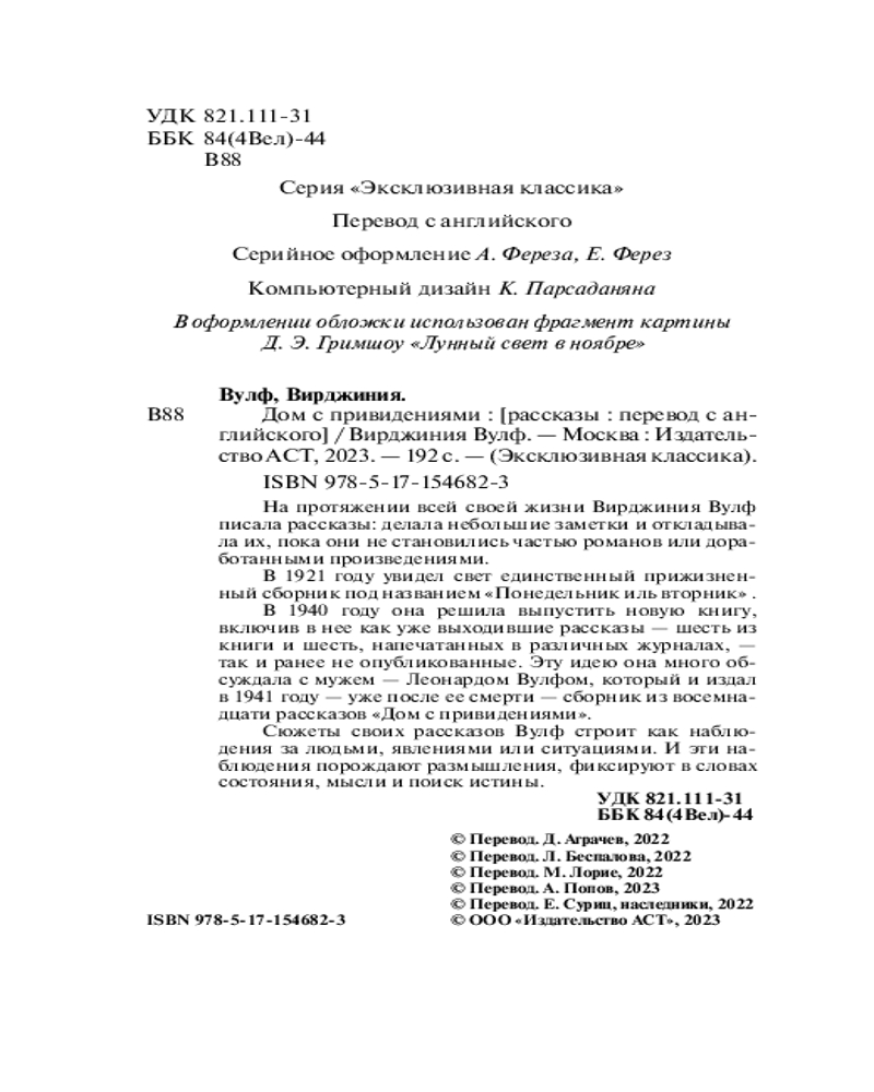 💳 Оплатить за товар можно при получении 🇰🇿 Есть бесплатная доставка по Казахстану от 1 дня 🎁 Копите бонусы с каждой покупки Серия: Эксклюзивная классика (Лучшее) На протяжении всей своей жизни Вирджиния Вулф писала рассказы: делала небольшие заметки и откладывала их, пока они не становились частью романов или доработанными произведениями. |