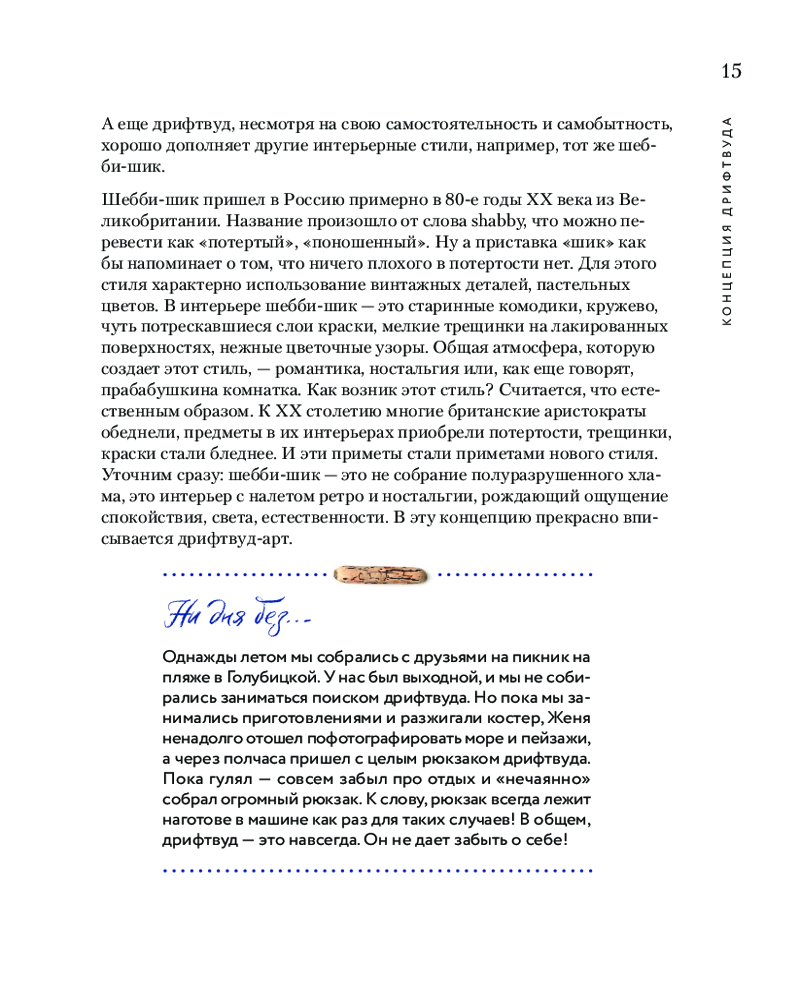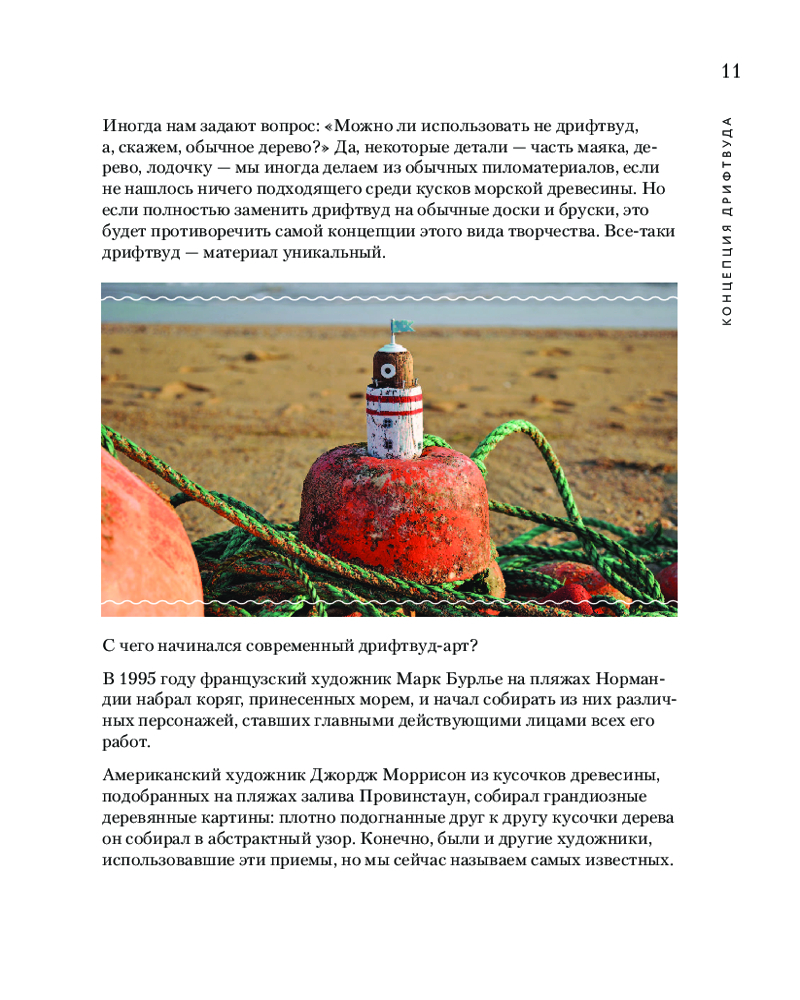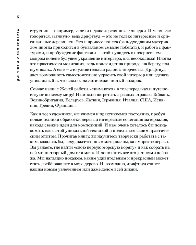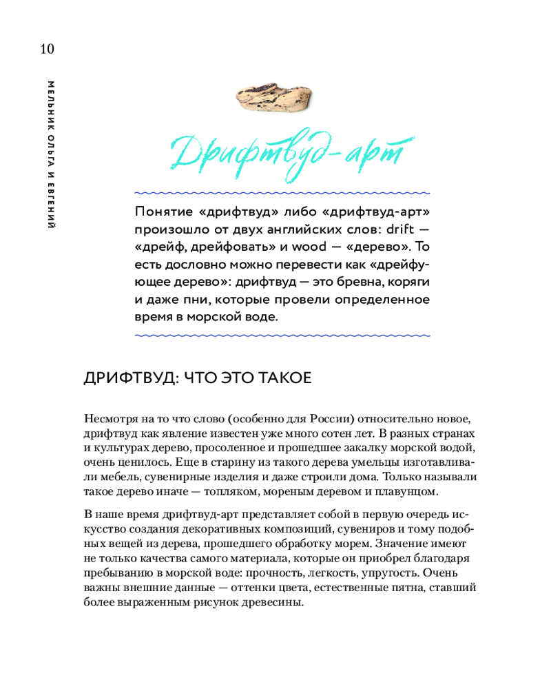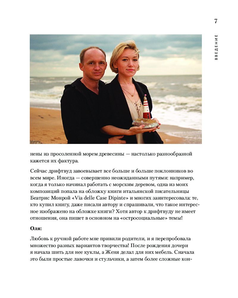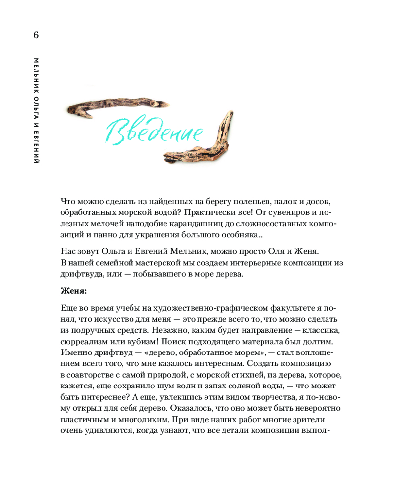 В этой книге вы познакомитесь с новой, но уже достаточно известной техникой дрифтвуда. Понятие «дрифтвуд» в переводе означает «дрейфующее дерево». В разных странах и культурах дерево, просоленное и прошедшее закалку морской водой, очень ценилось, из такого дерева умельцы изготавливали мебель, сувенирные изделия и даже строили дома.