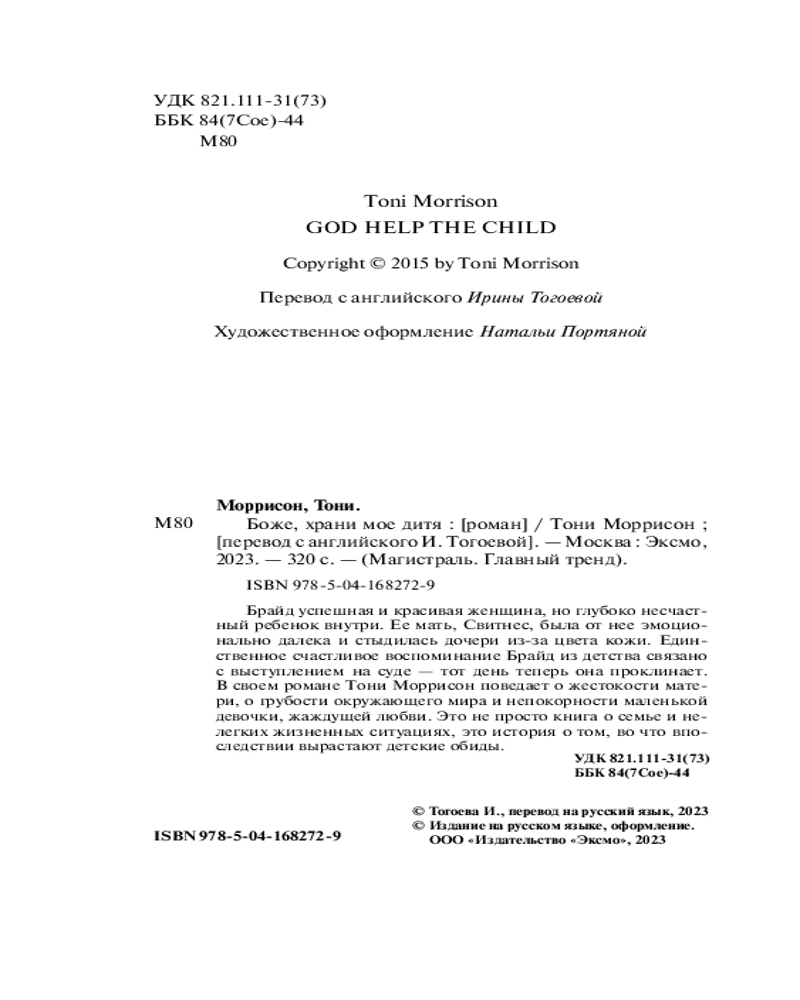 💳 Оплатить за товар можно при получении 🇰🇿 Есть бесплатная доставка по Казахстану от 1 дня 🎁 Копите бонусы с каждой покупки Серия: Магистраль. Главный тренд Брайд успешная и красивая женщина, но глубоко несчастный ребенок внутри. Ее мать, Свитнес, была от нее эмоционально далека и стыдилась дочери из-за цвета кожи. Единственное счастливое воспоминание Брайд из детства связано с выступлением на суде — тот день теперь она проклинает. |