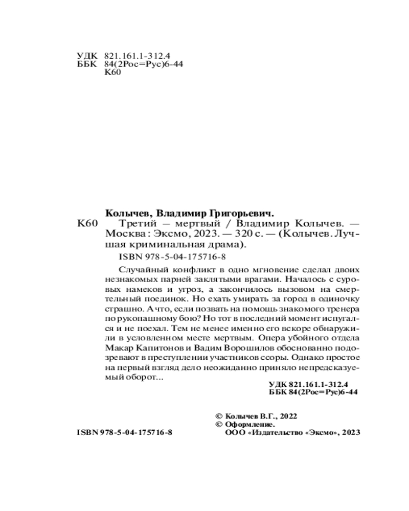 | Третий — мертвый Владимир Григорьевич Колычев