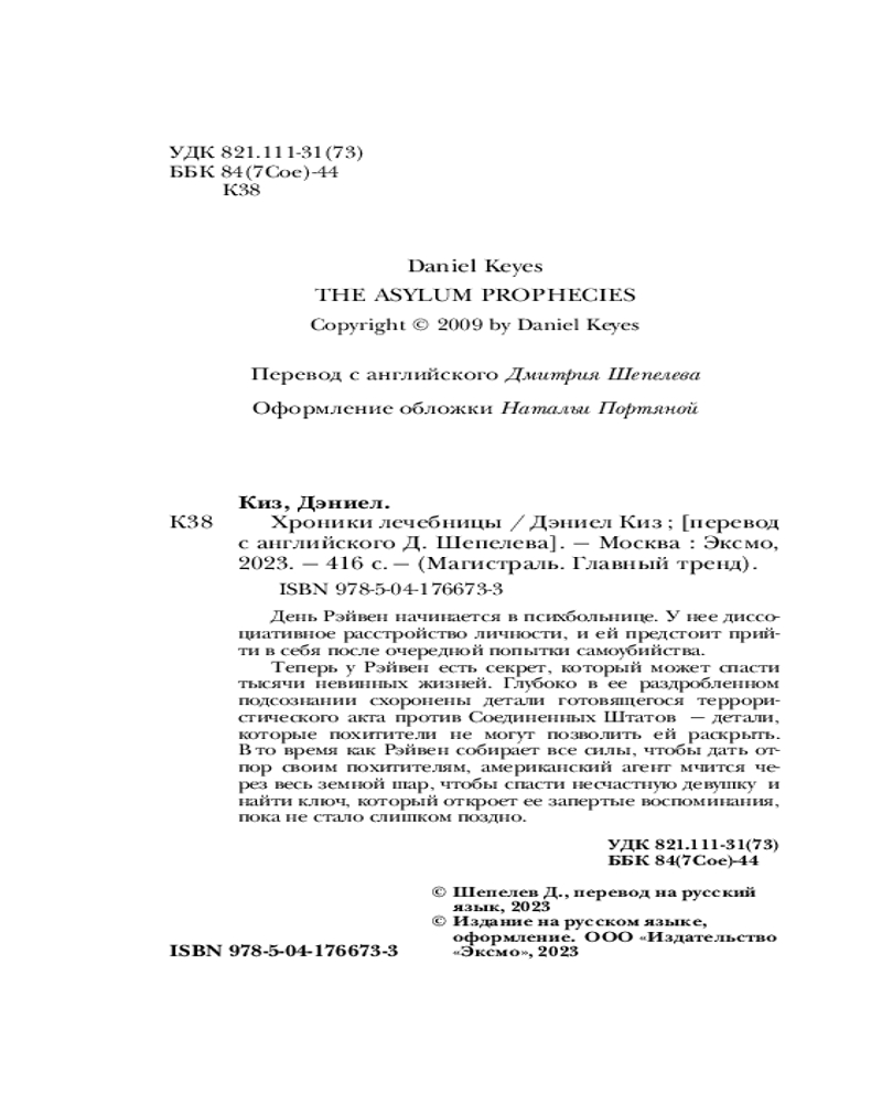 💳 Оплатить за товар можно при получении 🇰🇿 Есть бесплатная доставка по Казахстану от 1 дня 🎁 Копите бонусы с каждой покупки Серия: Магистраль. Главный тренд Дэниел Киз всегда интересовался пограничными состояниями, герои с раздвоением личности, с психическими расстройствами занимали его всегда — начиная с «Таинственной истории Билли Миллигана». |