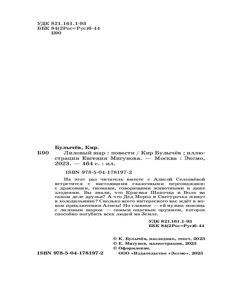 В данный момент этот товар отсутствует в продаже. Возможно, у нас найдется аналогичный или похожий товар здесь. Серия: Детская библиотека (новое оформление) Думаете, что всё знаете о сказках? Кир Булычёв откроет перед нами новый, непохожий на другие мир сказок: в нём Волк дружит с Красной Шапочкой и предпочитает морковку на обед — ведь он вегетарианец, а Дед Мороз и Снегурочка спасаются от жары в холодильнике. Эти и многие другие герои встретят вас в новом путешествии Алисы — в легендарной эпохе сказок.