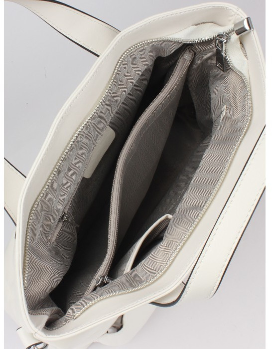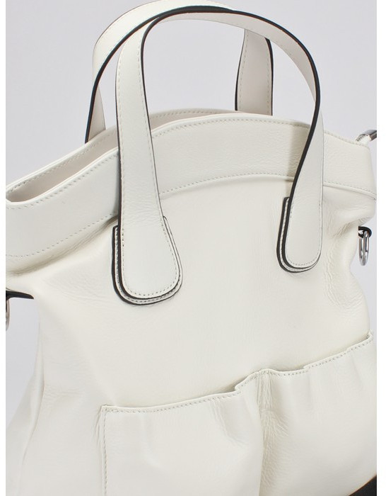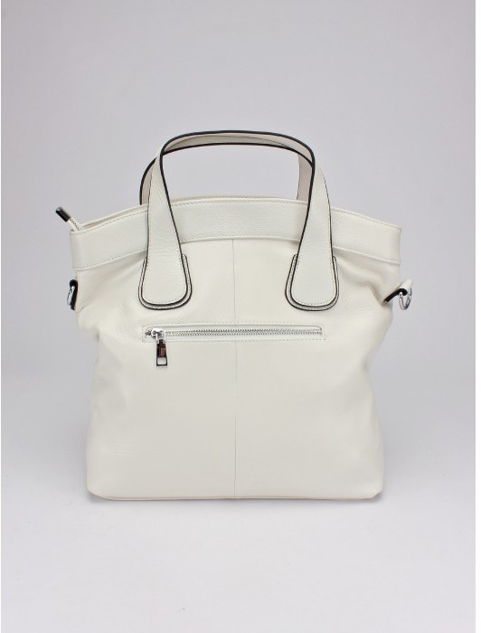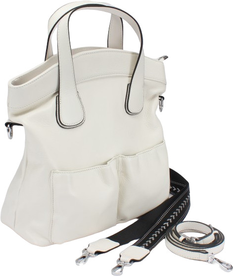 Вместительная женская сумка из натуральной кожи. Имеет одно отделение на молнии с внутренним карманом-перегородкой и карманами для документов и мелочей. Для предметов первой необходимости предусмотрены наружные карманы, которые расположены на передней и задней стенках аксессуара. Помимо ручек, сумку можно носить на плече — в комплекте два плечевых ремня, с текстильным и кожаным ремешком.