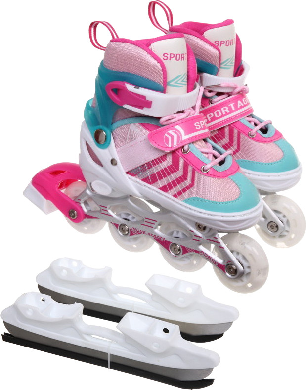 Раздвижные коньки-трансформеры — модели любительского уровня, которые больше всего подойдут детям младшего и среднего школьного возраста. У них быстро растёт нога, а менять коньки каждый сезон не выгодно. Проблема решается просто: ботинок таких коньков раздвигается на несколько размеров. У данной модели есть сменная роликовая рама, которая добавляет ещё больше практичности. Такие модели подходят для катания круглый год: зимой для льда, а летом для роликовой площадки.