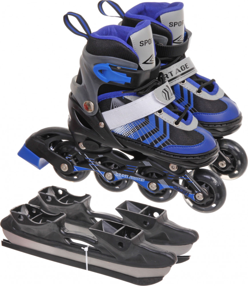Раздвижные коньки-трансформеры — модели любительского уровня, которые больше всего подойдут детям младшего и среднего школьного возраста. У них быстро растёт нога, а менять коньки каждый сезон не выгодно. Проблема решается просто: ботинок таких коньков раздвигается на несколько размеров. У данной модели есть сменная роликовая рама, которая добавляет ещё больше практичности. Такие модели подходят для катания круглый год: зимой для льда, а летом для роликовой площадки.