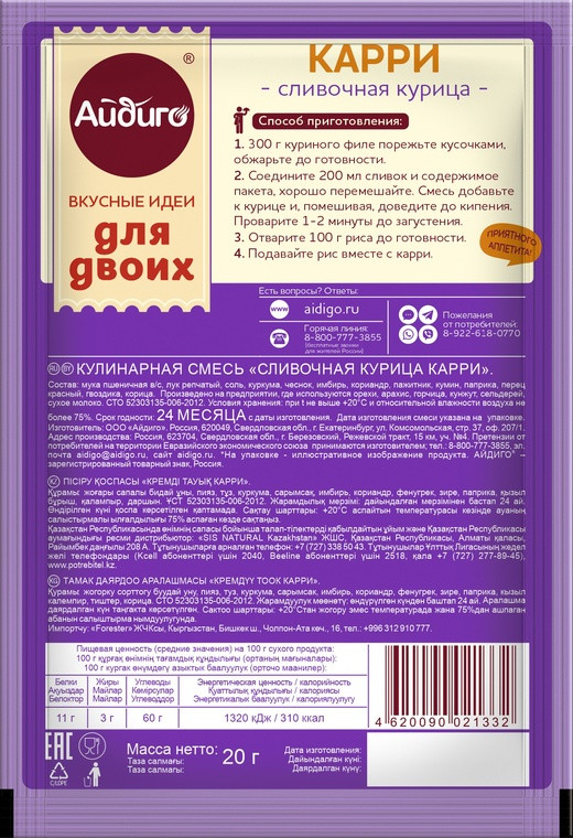 Айдиго Приправа «Сливочная курица карри»+15 не вкусно