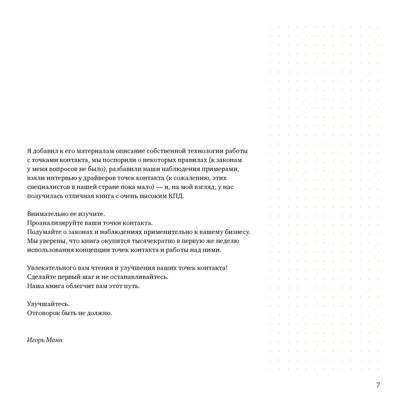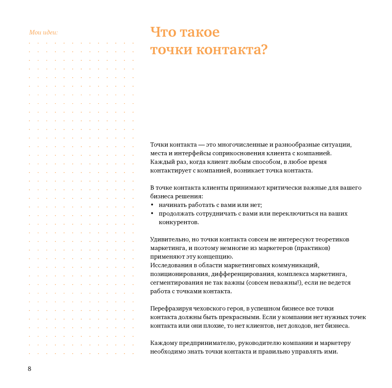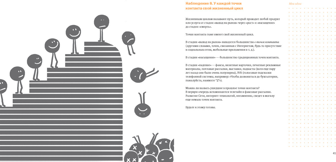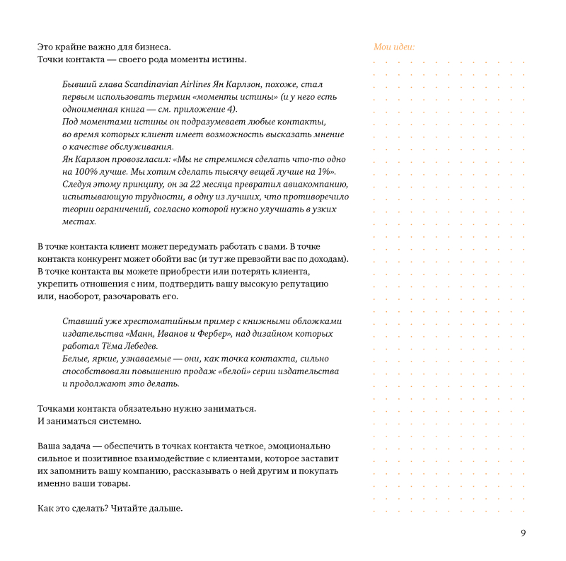 Универсальная инструкция хоть для бабульки, которая семечками торгует, хоть для КазМунайГаза. Много о точках контакта Манн пишет во всех своих книгах, но в этой тетради, естественно, все максимально развернуто. Псевдонаучные из пальца "законы" и правила мне показались лишними, но много классных идей в момент чтения книжки посетило.