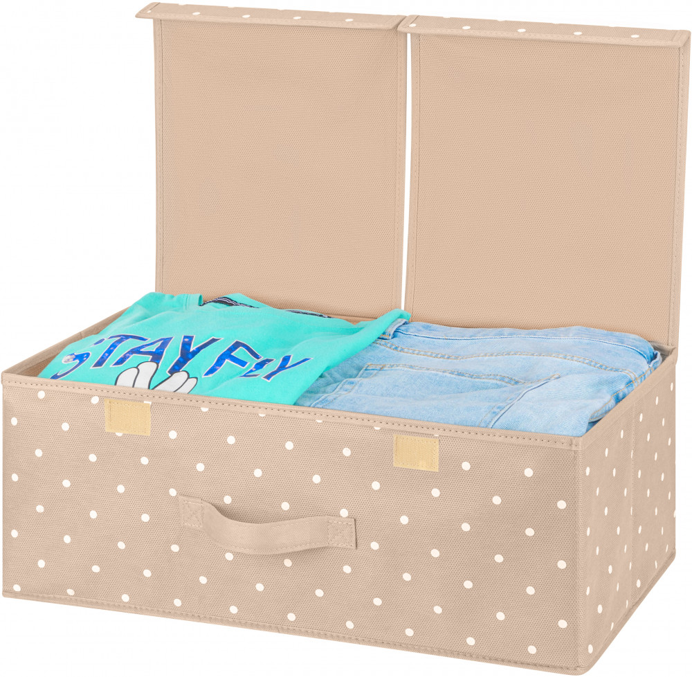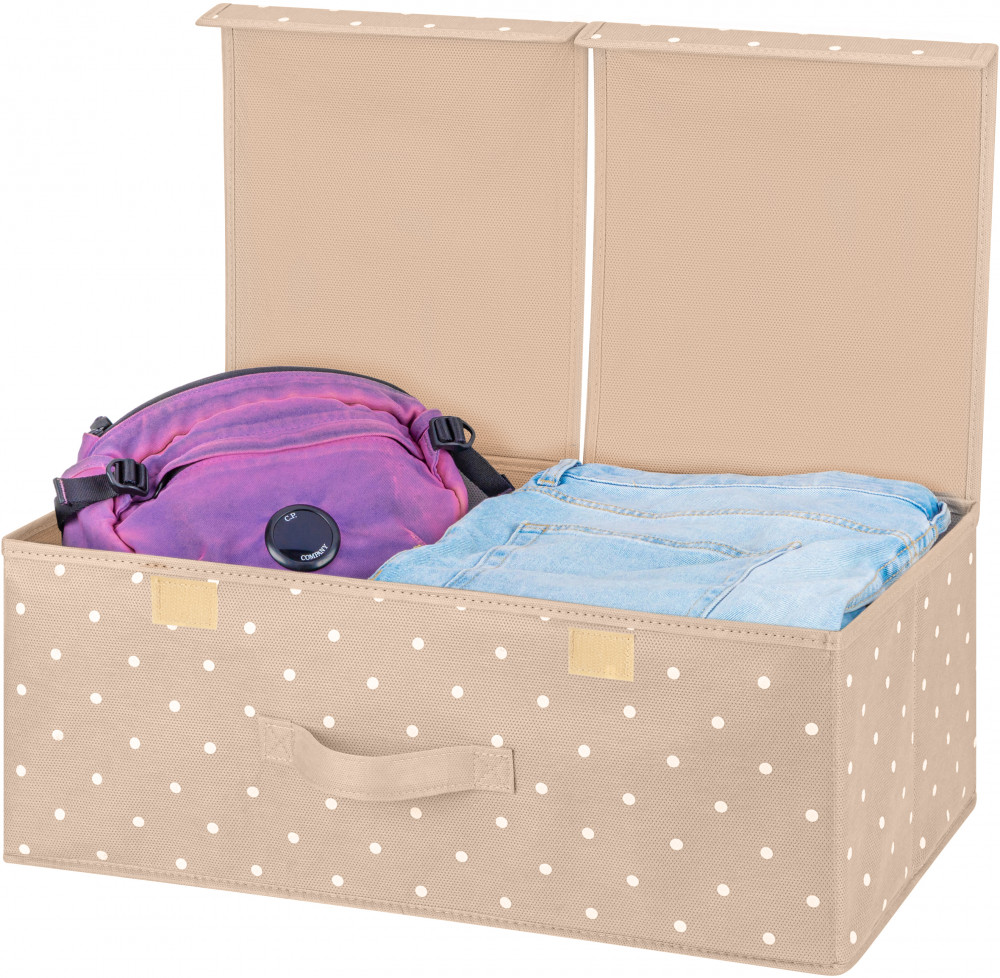 El Casa Короб складной для храненияВ данный момент этот товар отсутствует в продаже. Возможно, у нас найдется аналогичный или похожий товар здесь. Складной короб имеет 2 крышки на липучках и ручку для выдвигания с полки. Кофр эстетично выглядит. Его можно разместить не только в шкафу, но и в интерьере. Удобно использовать в прихожей, гостиной, спальне, детской и любых других комнатах. Такие кофры помогут организовать систему для хранения самых разных вещей в едином стиле, будь то одежда, игрушки, канцелярия, косметика, нижнее белье, носки, рукоделие или другие мелочи. Органайзер выполнен из нетканого материала и имеет плотные картонные вставки. Такой контейнер станет удобным дополнением дома и поможет эффективно использовать каждый сантиметр пространства. |