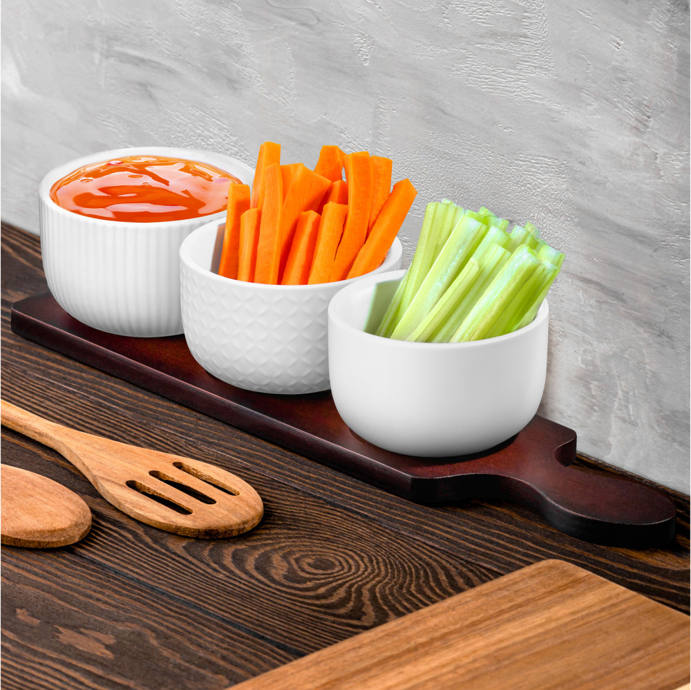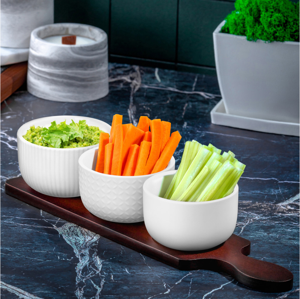 Elan Gallery Набор пиал для сервировки «Микс»В данный момент этот товар отсутствует в продаже. Возможно, у нас найдется аналогичный или похожий товар здесь. Серия: Колоранс Набор серии «Колоранс» состоит из 3-х пиал на бамбуковой подставке. Маленькие горшочки подойдут для сервировки, хранения, выпекания или украшения интерьера. Украсят вашу кухню в роли настольного набора для специй как солонки, перечницы, сахарницы или соусники. Наполните их солью, перцем, сахаром, вареньем, медом, соусами. Красивые круглые баночки подойдут для подачи фруктов, сухофруктов, сладостей. Емкости удобны для организации хранения в шкафу, холодильнике, морозилке. Универсальные банки подойдут для чая, кофе, приправ, круп, сыпучих продуктов. Баночки можно использовать как рамекины или порционные жюльенницы — кокотницы. Жаропрочные горшки подойдут для запекания в духовке жаркого, выпечки, запеканок, омлета, жюльена, кондитерских изделий, блюд из овощей, мяса и рыбы. Температура для приготовления до 230 градусов, для замораживания до −24. Необычные формочки без подставки подходят для СВЧ (микроволновка) и ПММ (посудомойка). |