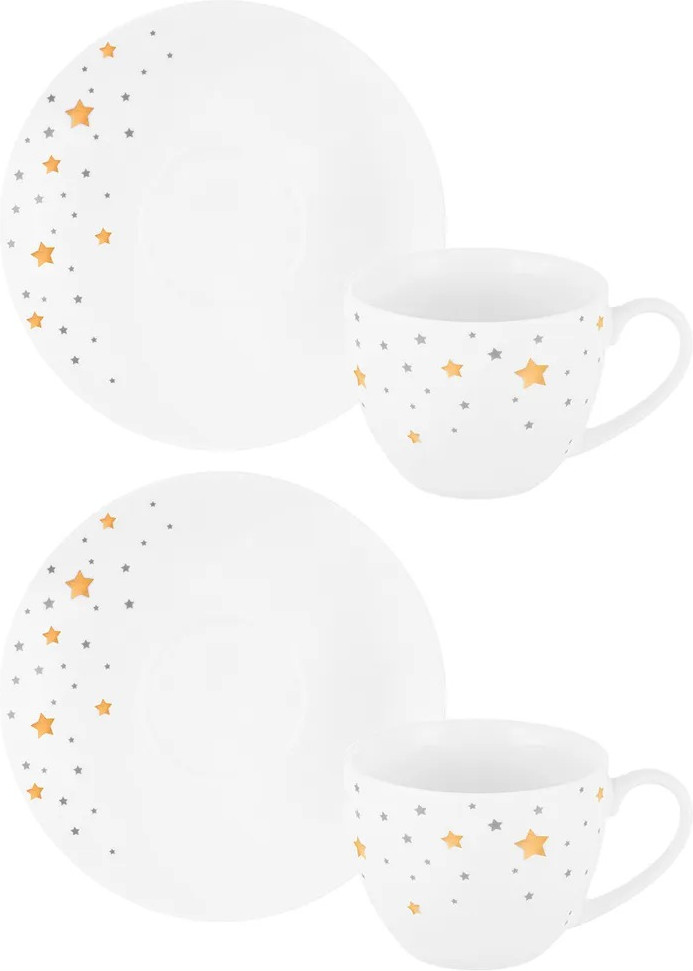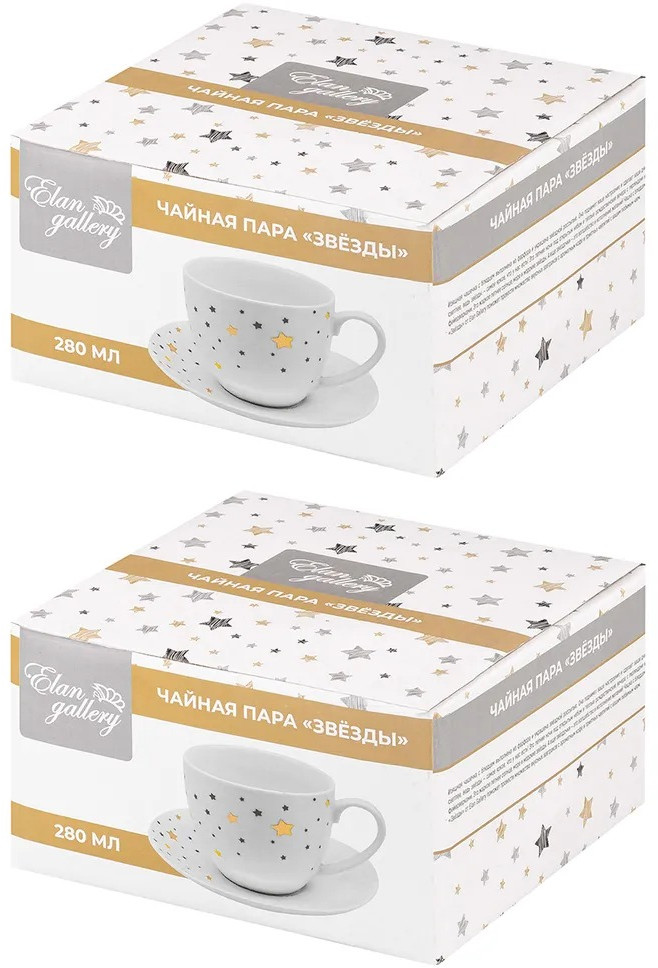 Elan Gallery Чайный набор «Звезды»В данный момент этот товар отсутствует в продаже. Возможно, у нас найдется аналогичный или похожий товар здесь. Серия: Звезды Чайная пара «Звезды» выполнена из фарфора и украшена звездной россыпью. Чайная пара поднимет ваше настроение и сделает ваши дни светлее, ведь звезды — самое яркое, что у нас есть! Это летние ночи под открытым небом и теплые рождественские вечера с гирляндами и фейерверками. Это жаркое летнее солнце, море и морские звезды. А еще звездочки — это волшебство и исполнение желаний! Чайная пара «Звезды» поможет провести множество вкусных завтраков с ароматным кофе и приятных чаепитий с вашим любимым чаем. Чайная пара не подходит для использования в микроволновой печи и посудомоечной машине. Поставляется в стильной картонной упаковке и сможет стать приятным подарком для ваших родных и близких! |