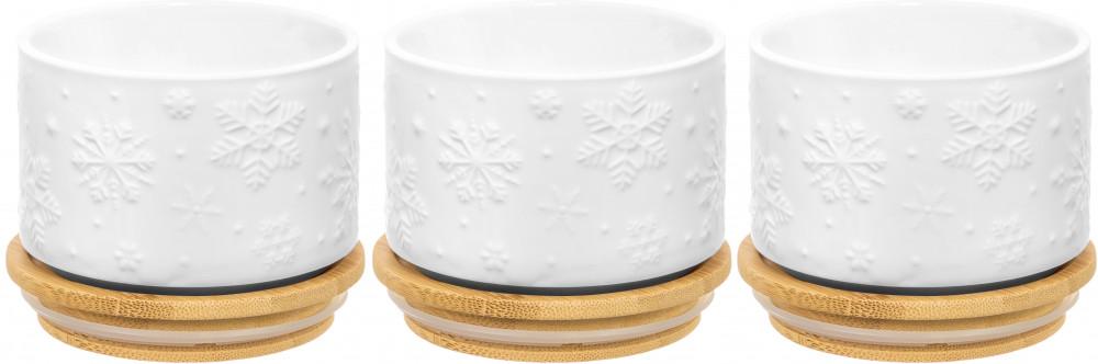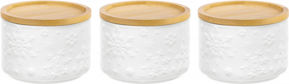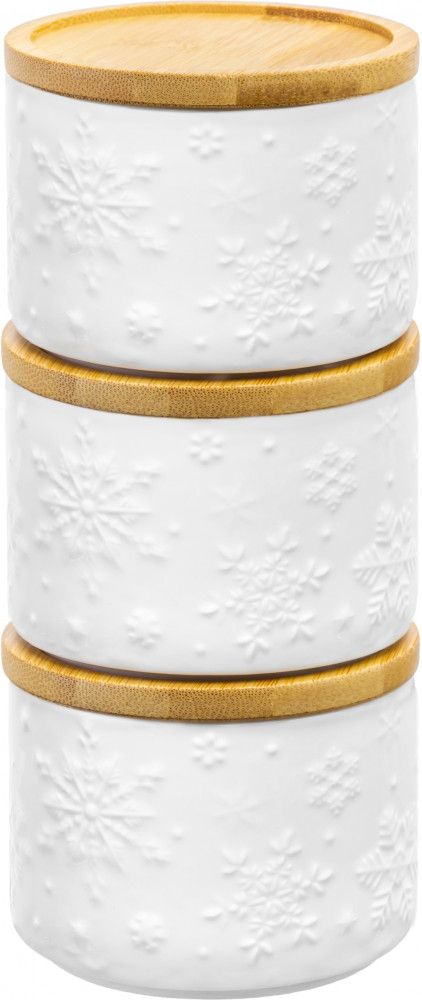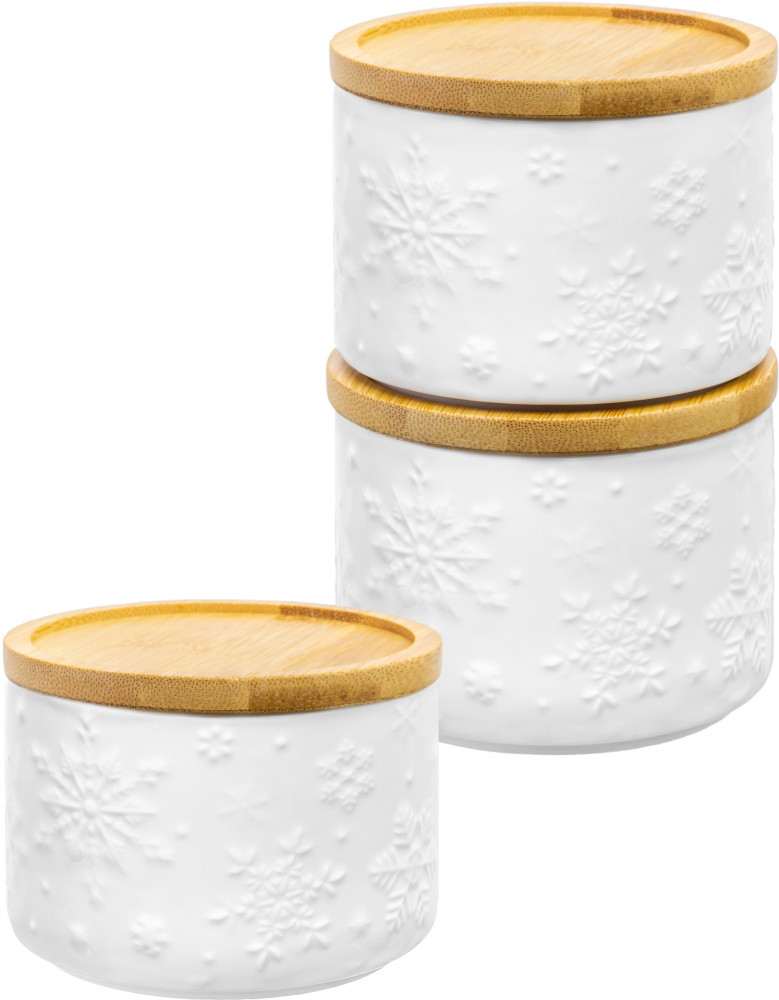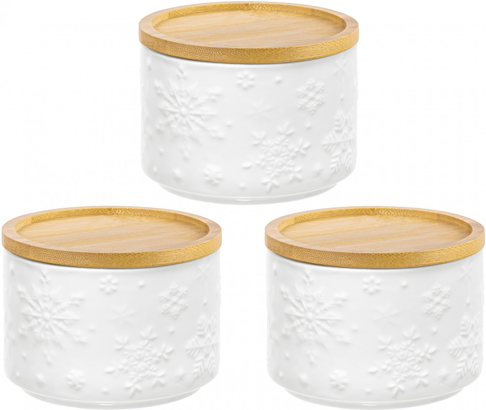 Elan Gallery Набор банок для сыпучих продуктов «Снежинки»В данный момент этот товар отсутствует в продаже. Возможно, у нас найдется аналогичный или похожий товар здесь. Серия: Снежинки Банка для хранения серии «Снежинки» поможет удобно организовать хранение приправ, чая, кофе, сахара и самых разных сыпучих продуктов, круп и специй. Баночка выполнена из высококачественного белого фарфора и украшена декоративными рельефными узорами. Имеет бамбуковую крышку с силиконовым уплотнителем. Фарфоровая посуда отличается от керамики повышенной плотностью. Фарфор не впитывает цвет продуктов и не деформируется от влаги, чему может быть подвержена керамическая посуда. Банку без крышки можно использовать в СВЧ и ПММ. Крышку из бамбука нельзя замачивать. Набор поставляется в стильной картонной упаковке. Банка из серии посуды «Снежинки» сможет стать настоящим украшением кухни и дома или приятным подарком для родных и близких! |