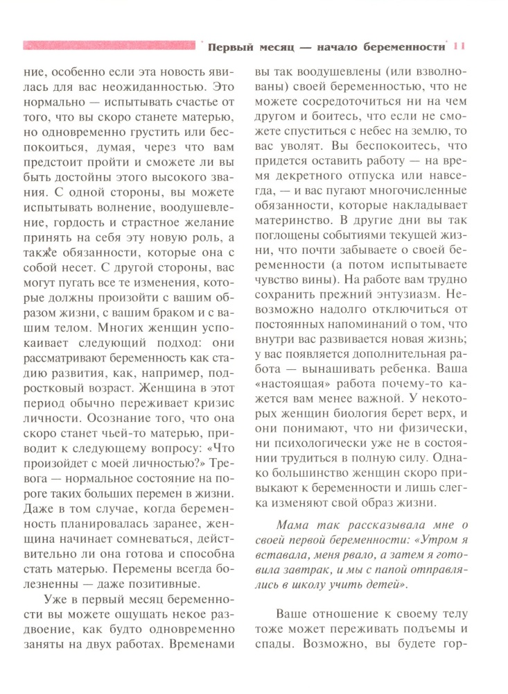 Вы узнаете обо всех изменениях, которые произойдут с вашим телом, самочувствием и сознанием, а также о таинственной жизни, происходящей внутри вас. Кроме того, вы научитесь сохранять самообладание в экстренных ситуациях: во время болезни, при непредвиденных осложнениях и даже во время преждевременных родов.