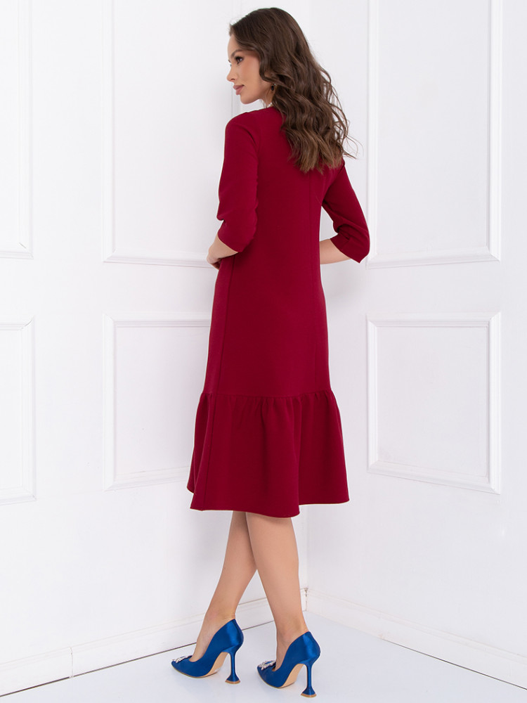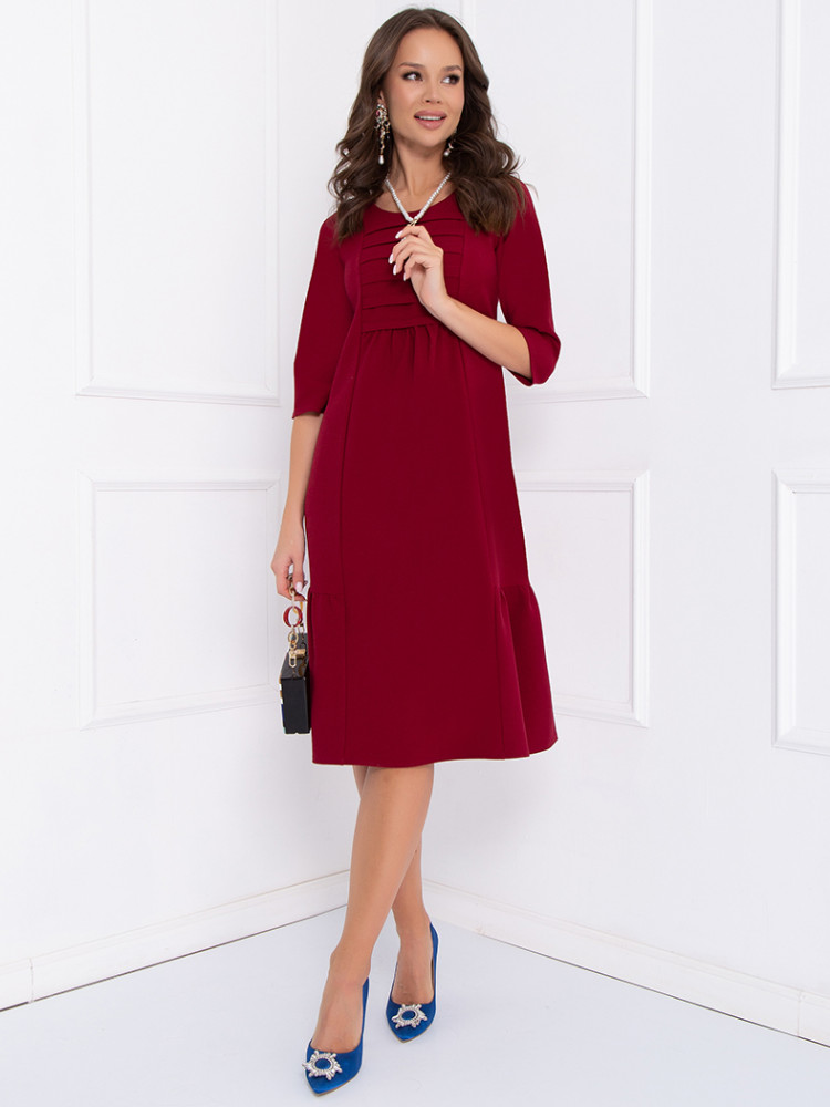 Ткань довольно плотная, цвет бордо очень насыщенный, красивый. Платье понравилось, брала свой 44 размер. Но в боках уберу по 2-3 см и будет замечательно.