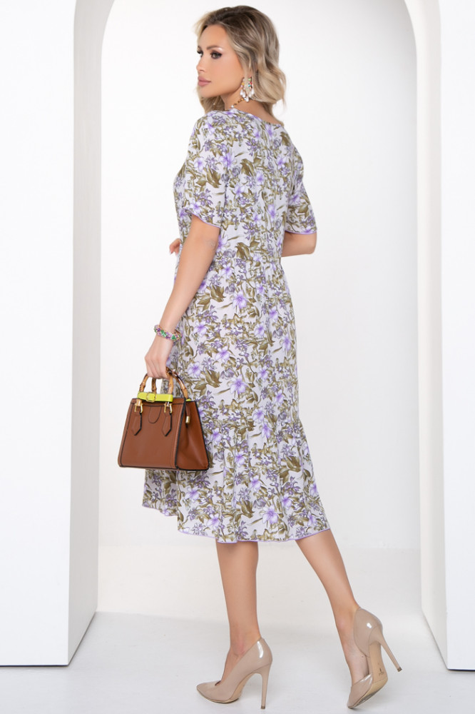 Платье легкое, сиреневые цветы очень симпатично смотрятся. Чувствуешь себя уютно.