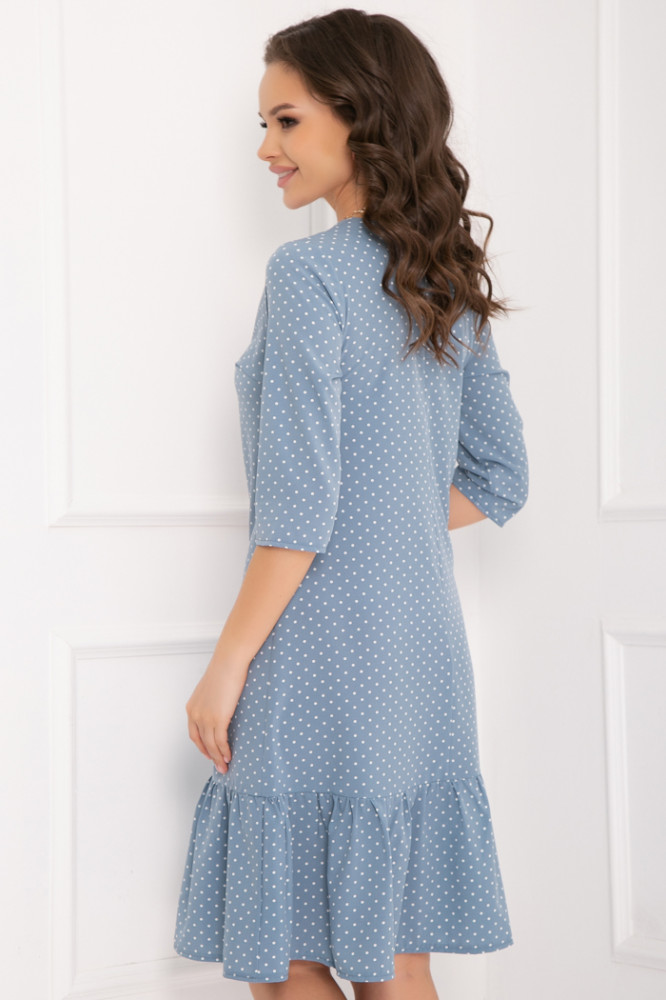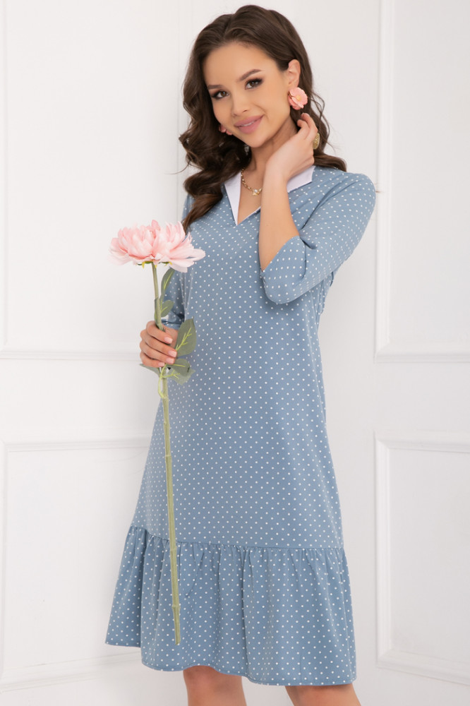 Платье свободного кроя. Удобно, что можно одеть с ремешком. Красивый мелкий горошек. Оборка украшает низ, а белый внутренний ворот освежает. Размер подошел.