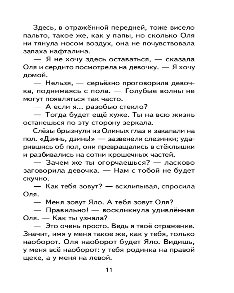 💳 Оплатить за товар можно при получении 🇰🇿 Есть бесплатная доставка по Казахстану от 1 дня 🎁 Копите бонусы с каждой покупки Серия: Книги для внеклассного чтения Все мы порой ленимся, спорим с близкими и совсем не хотим посмотреть на себя со стороны. Так же вела себя и третьеклассница Оля, пока однажды не попала через зеркало в Королевство кривых зеркал и не познакомилась со своим отражением, Яло. В этом королевстве всё наоборот, а управляют им жестокие и злые правители. Чтобы вернуться домой, Оля должна научиться дружить, быть храброй и ответственной. Сказка «Королевство кривых зеркал» легла в основу знаменитого советского фильма и по сей день напоминает взрослым и детям, как важно иногда смотреть на самих себя со стороны. |