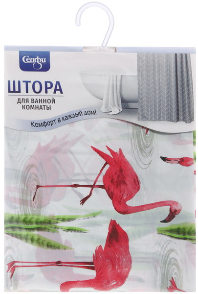 Штора для ванной «Фламинго»-25% +28 рисунок четкий пропускает свет клеёнчатая