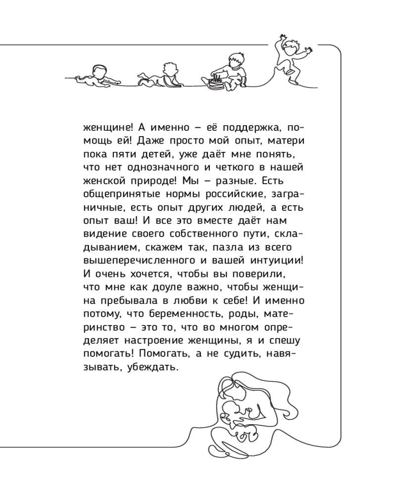 Если коротко описать эту книгу, то это просто позор. Это будто разговор ни о чем, тебе не объясняют почему, а просто свое мнение странное высказывают. Из абсурда с первой главы (больше читать не смогу): нельзя делать аборты, узи, чистку и прочие любые манипуляции, ПОТОМУ ЧТО ЭТО НАВРЕДИТ ПРИ СЛЕДУЮЩИХ БЕРЕМЕННОСТЯХ!! позор. Первая книга, которую выкину, стыдно, что купила, не советую.