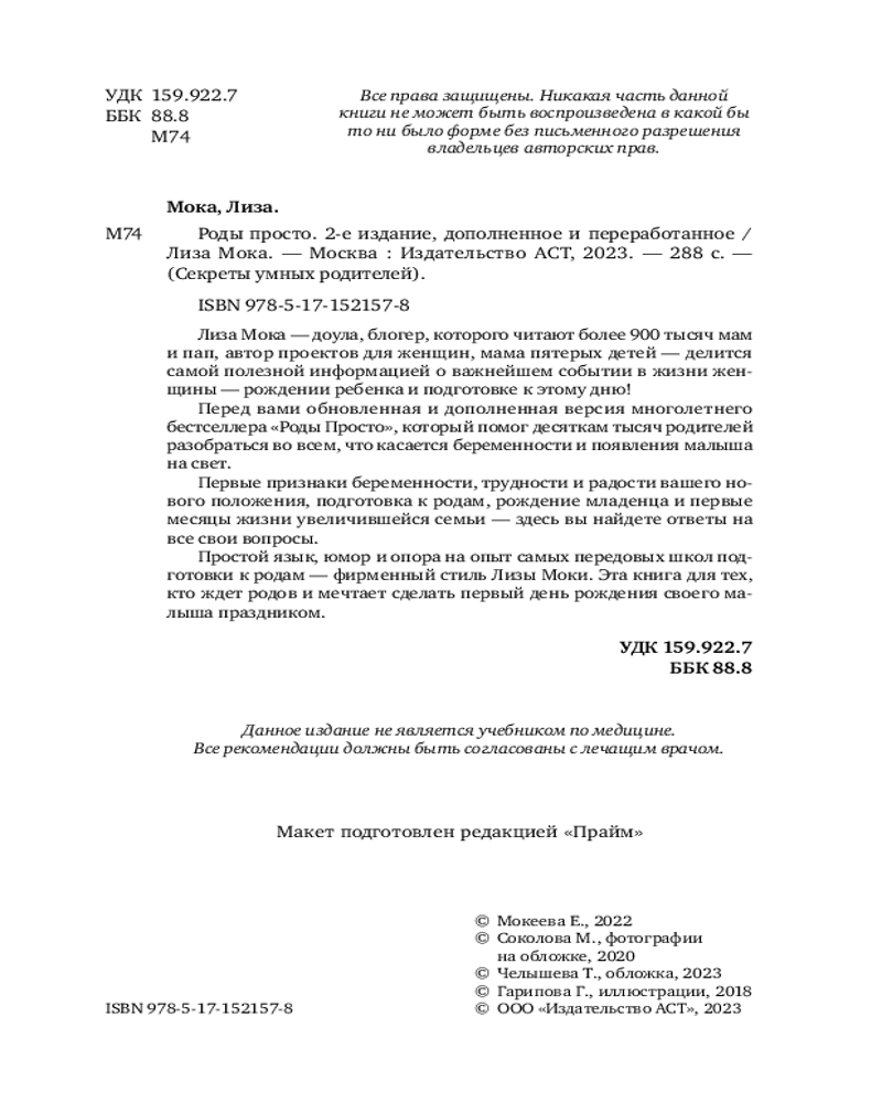 💳 Оплатить за товар можно при получении 🇰🇿 Есть бесплатная доставка по Казахстану от 1 дня 🎁 Копите бонусы с каждой покупки Серия: Секреты умных родителей Перед вами обновленная и дополненная версия многолетнего бестселлера (общий тираж — около 30 тысяч экземпляров). Простое и доступное изложение, юмор и опора на опыт самых передовых школ подготовки к родам — фирменный стиль автора. Популярный блогер, которого читают более миллиона мам и пап, перинатальный психолог, доула и мама пятерых детей уже более девяти лет делится своим опытом с будущими родителями. Беременность от А до Я, трудности и радости вашего нового положения, подготовка к родам, рождение малыша и первые месяцы жизни увеличившейся семьи — вы получите ответы на все свои вопросы. |