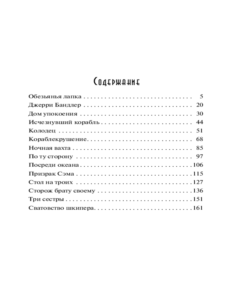 В сборник вошли и другие произведения Джейкобса, объединенные мистической темой, как серьезные и по-настоящему пугающие, так и ироничные, дразнящие читателя намеками на сверхъестественное, в итоге получающее неожиданное, но вполне реалистичное объяснение; а также озорные, принадлежащие к любимому автором жанру «моряцких баек о чудесах океанских глубин». |
